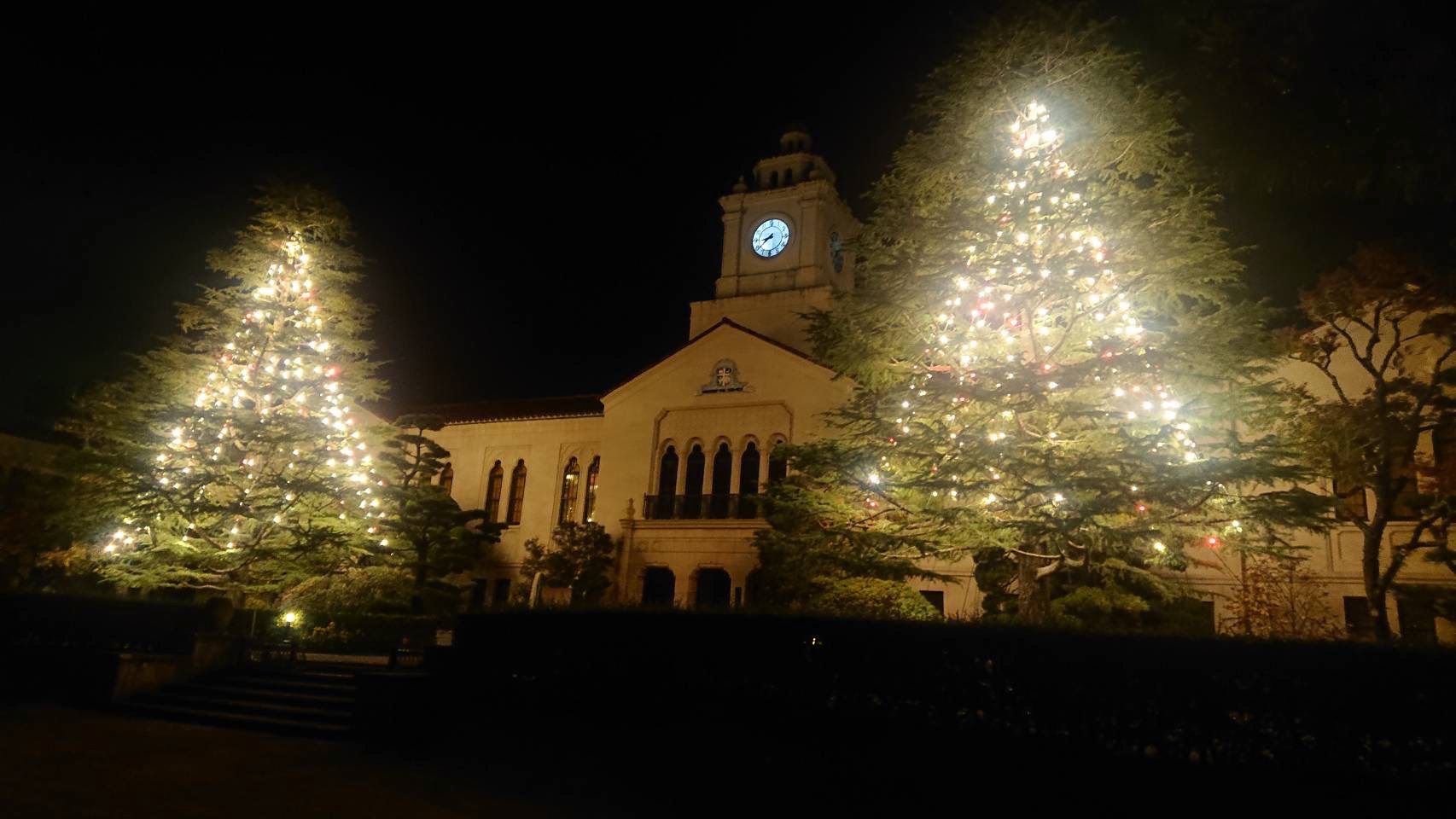 2024年の関西学院大学のクリスマスツリーのお写真です〜。