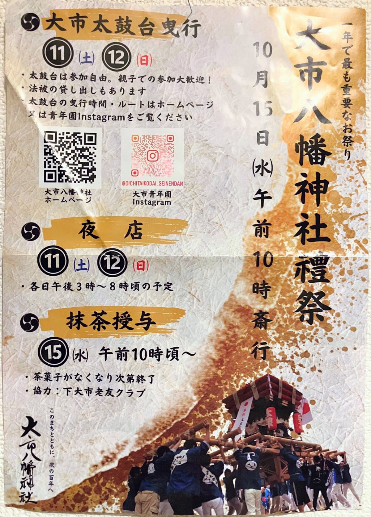 ご近所の秋祭りのチラシを見つけた方、日程をご存知の方は、こちらのフォームから教えていただけたら幸いです〜!