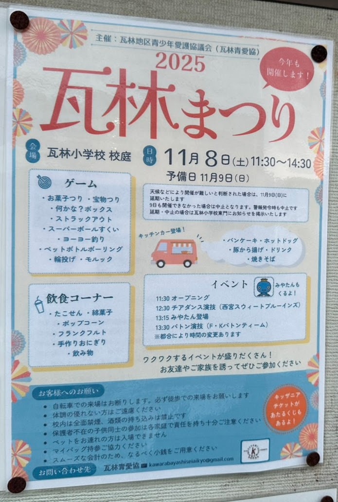 瓦木わくわくまつり2025 – 瓦木小学校 – 9月23日(火・祝)