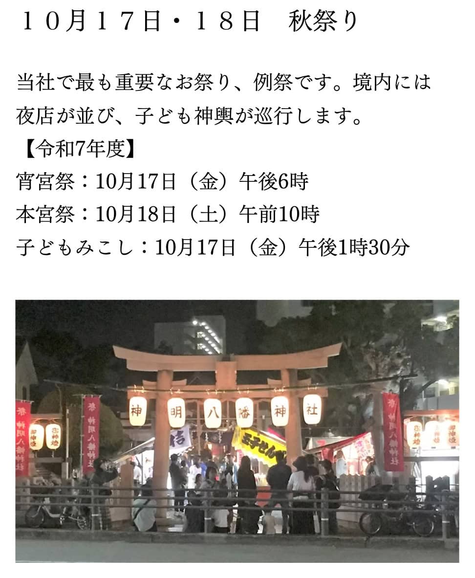 秋祭り – 神明八幡神社 – 10月17日(金)・18日(土)