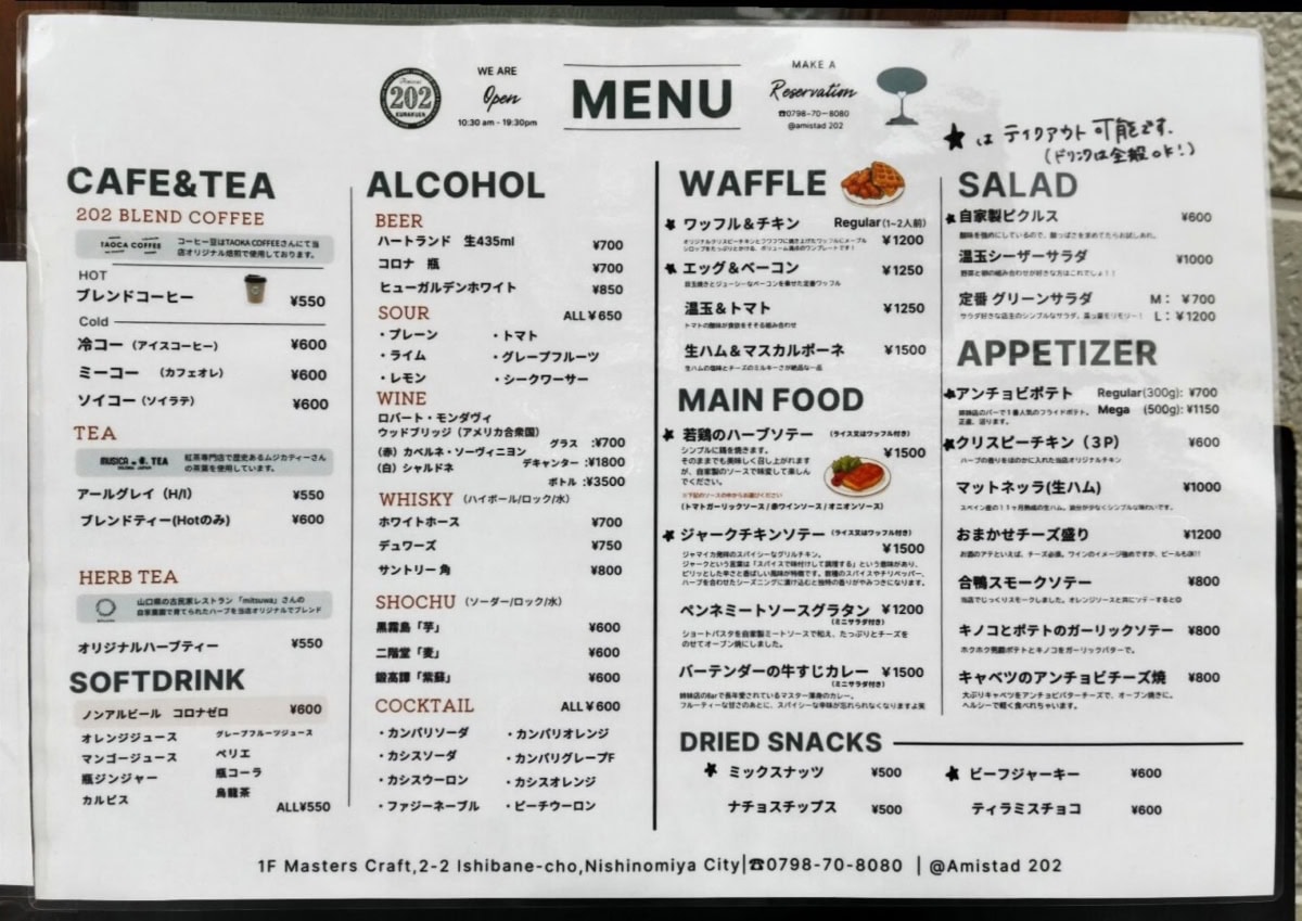 アルコールもビール、サワー、ワイン、ウイスキー、焼酎、カクテルまで幅広くそろっています。ワッフルやカレーなどのおしゃれ系ごはんから、生ハムやチーズのおつまみまで揃っていて、昼飲みも楽しめそうなお店です〜😄