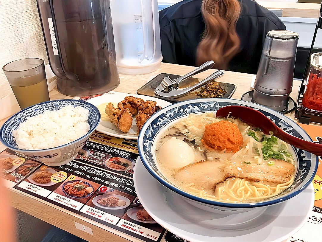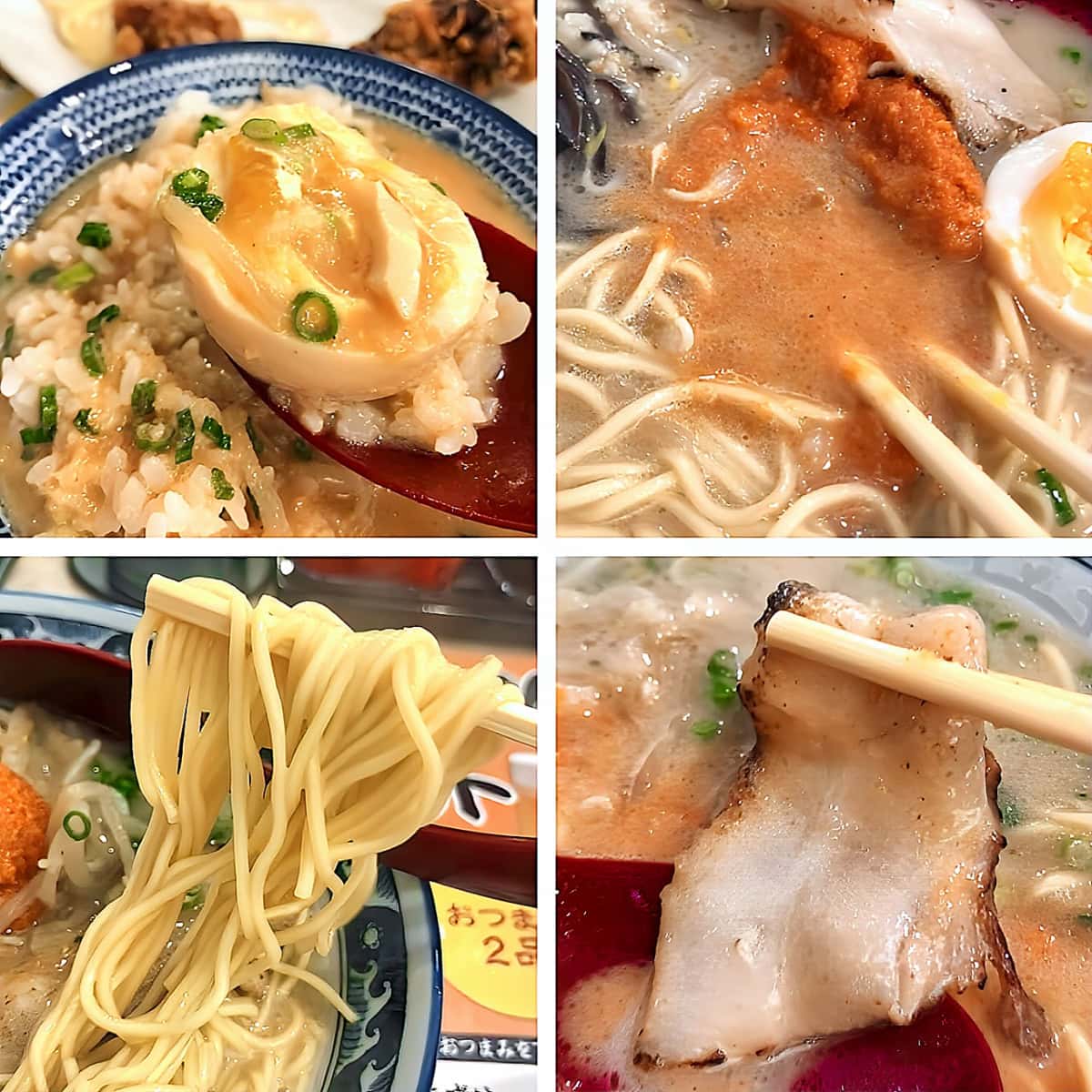 濃厚豚骨に明太&にんにくのパンチ。麺にからんで、ご飯で〆まで大満足🍜✨