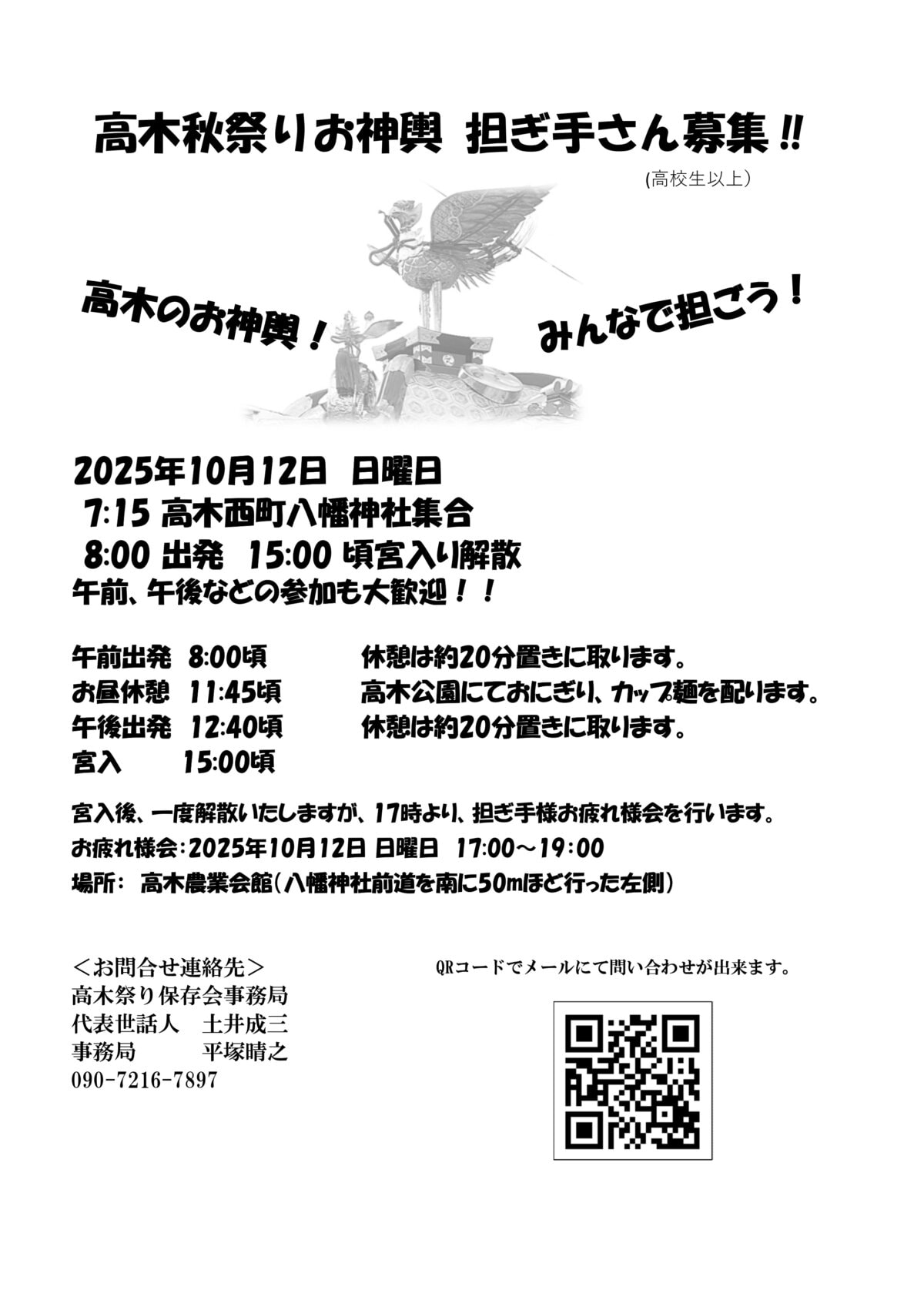 → 090-7216-7897 に電話 or こちらをクリックするか、チラシのQRからメールで「担ぎます」と一言でOK。