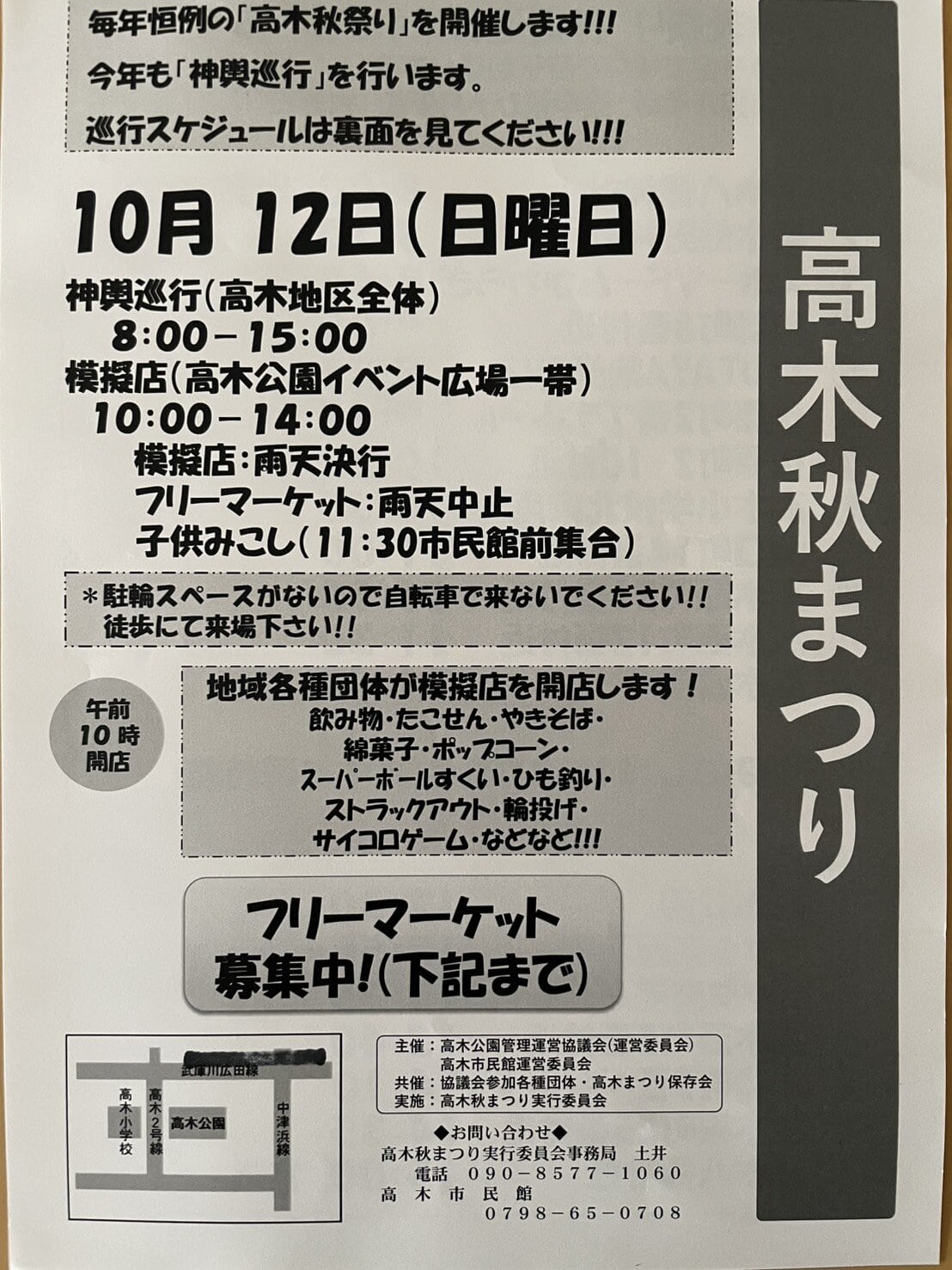 今年は高木秋祭りで特別なお神輿(おみこし) デビューしてみませんか〜?