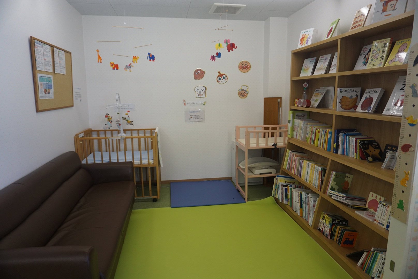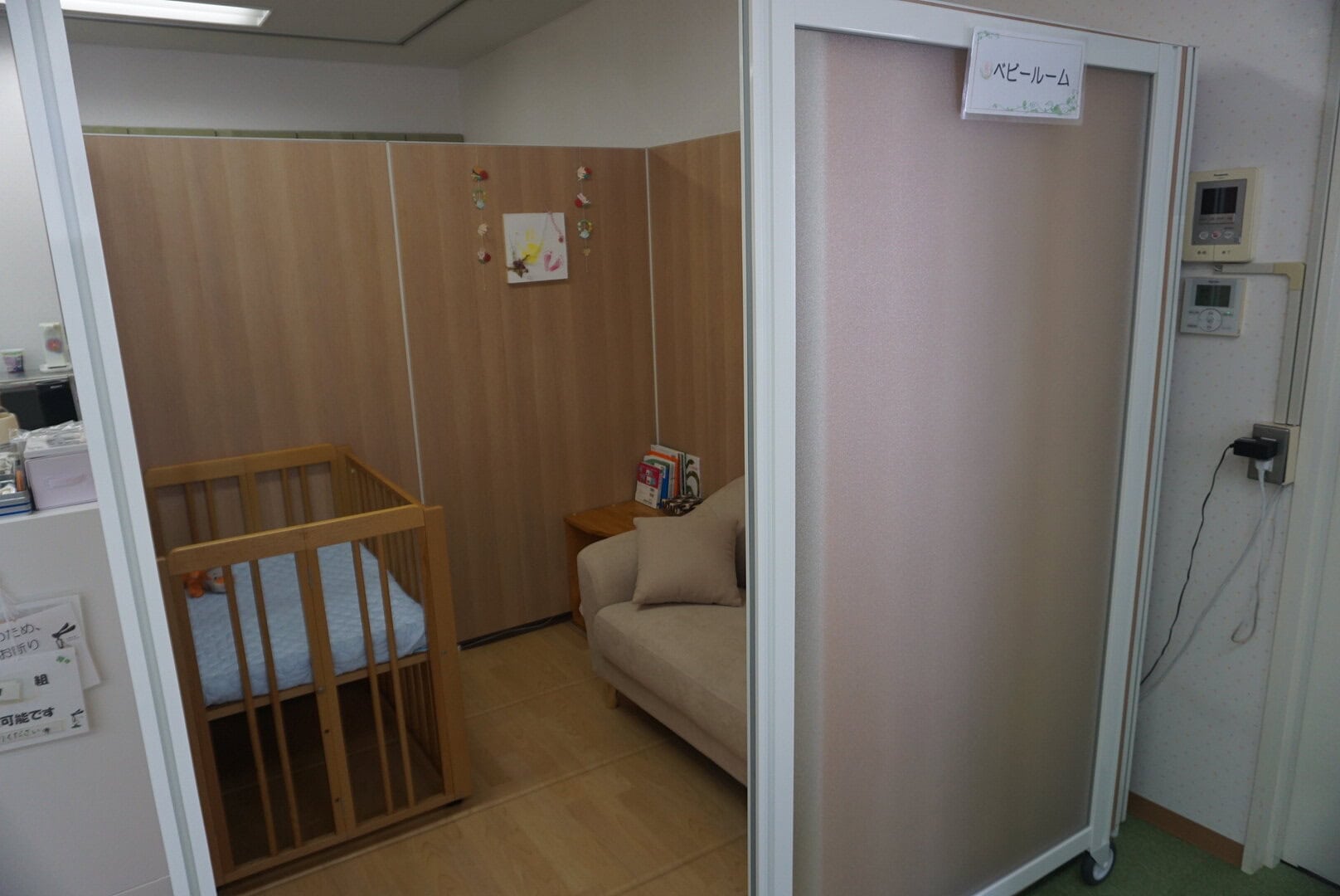 授乳スペースやオムツ替え、赤ちゃんが寝てしまった時のベビーベッドもあります。