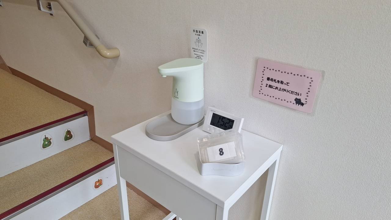 入ってすぐに、下で取った番号札と同じ番号の欄に名前とお子さんの年齢・月齢、入室時間を書きます📝