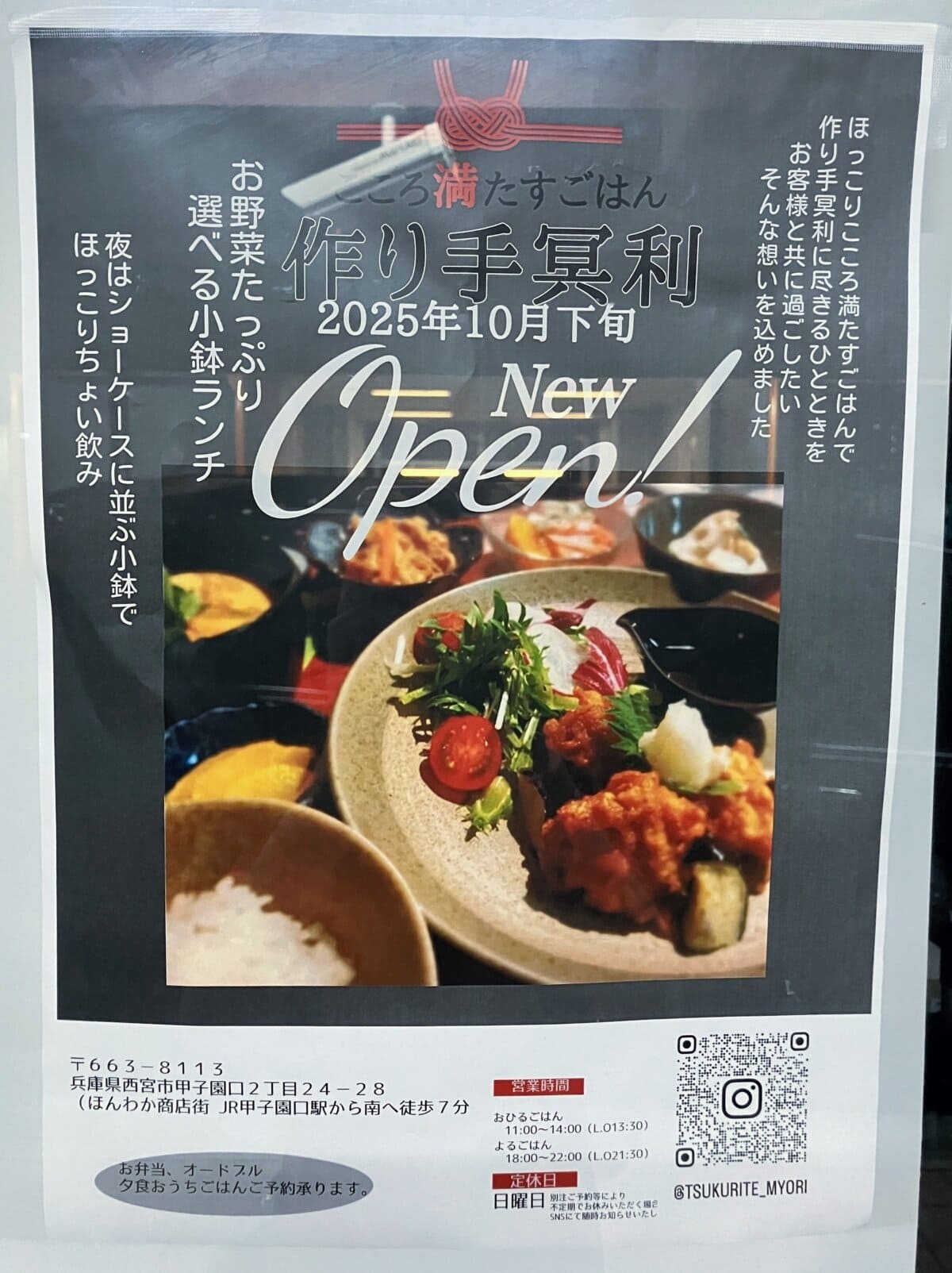 甲子園口ほんわか商店街に「作り手冥利」というご飯屋さんができるようです。
