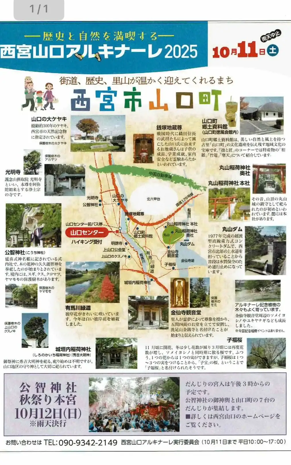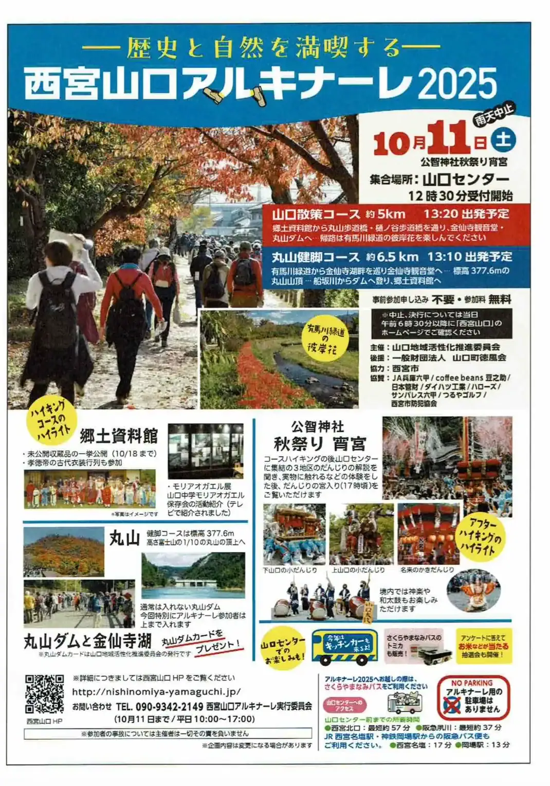 10月11日(土)に山口町で「西宮山口アルキナーレ2025」が開催されるようです。