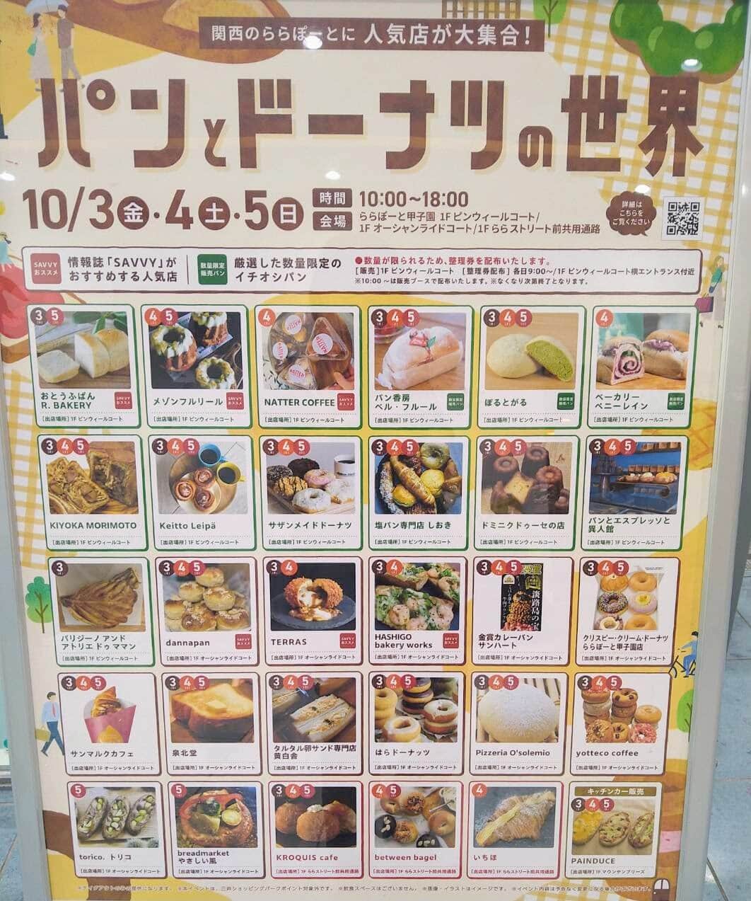 10月3日(金)~5日(日)、ららぽーと甲子園で現在開催中の「パンとドーナツの世界 2025」に出店しているお店のチラシをゲットしました🥐