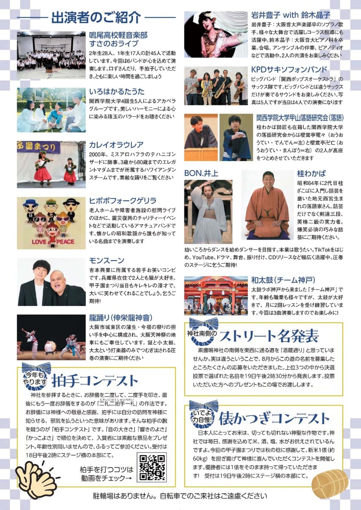 10月18日(土)、甲子園の素盞鳴神社で「甲子園まつり」が開催されるようです。