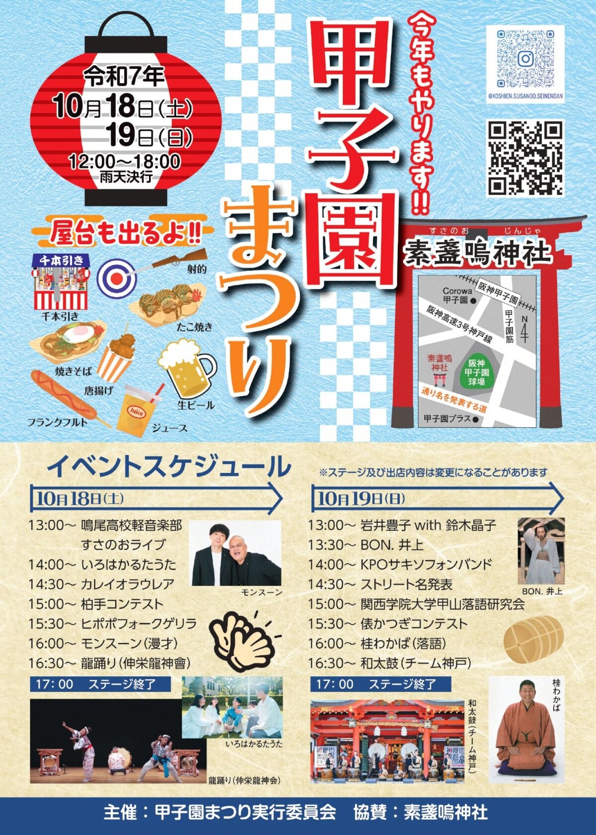 10月18日(土)、甲子園の素盞鳴神社で「甲子園まつり」が開催されるようです。