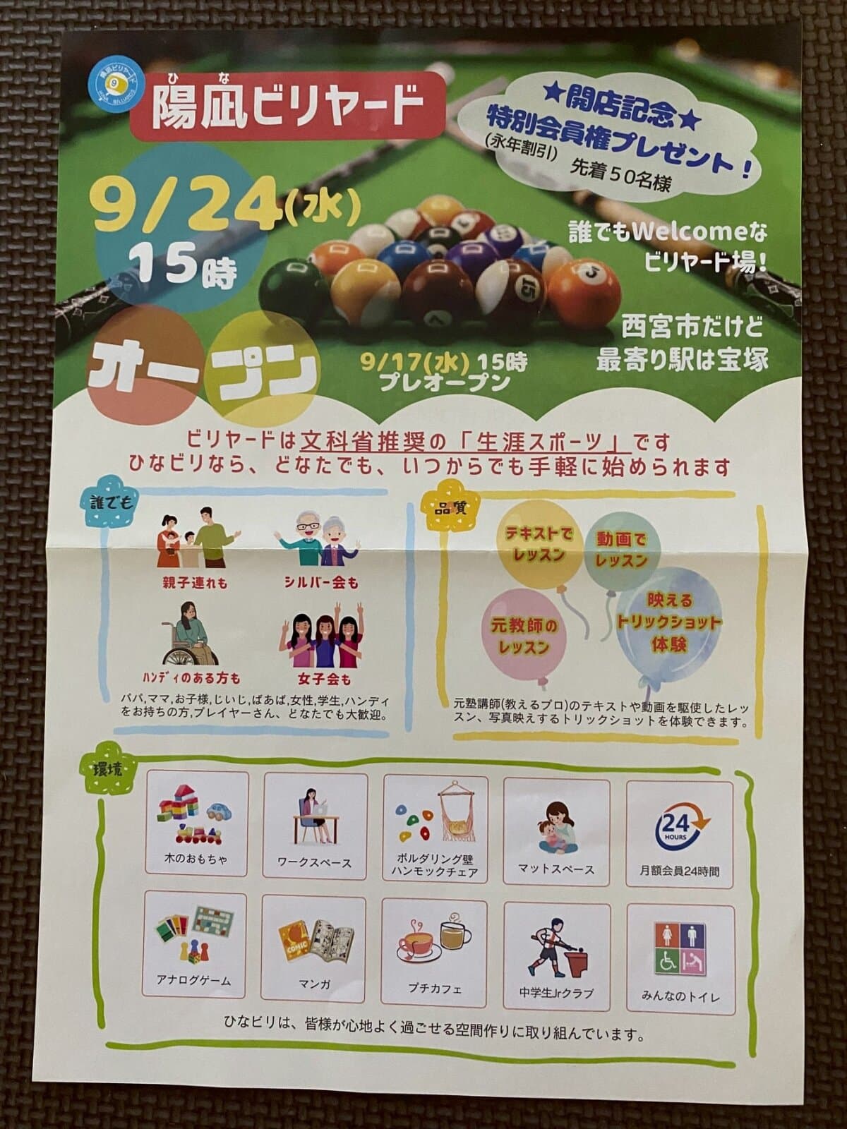 9月24日にオープンしていたようです😃ひなビリヤードっていうようです〜