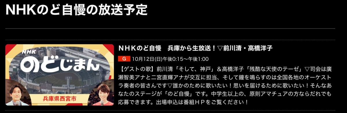 ついに明日10月12日(日)は、西宮のアミティ・ベイコムホールで開催される「NHKのど自慢」の放送日です🎤