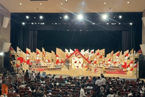 - 200組の予選審査が終わると、17時半の審査結果発表までは「カラオケ大会」が開かれます。主催者が予め曲を5曲ほど指定して、歌いたい人はステージに上がります。(誰でもOK!)曲が流れると、1フレーズごとに交代でマイクを回しながら歌います。