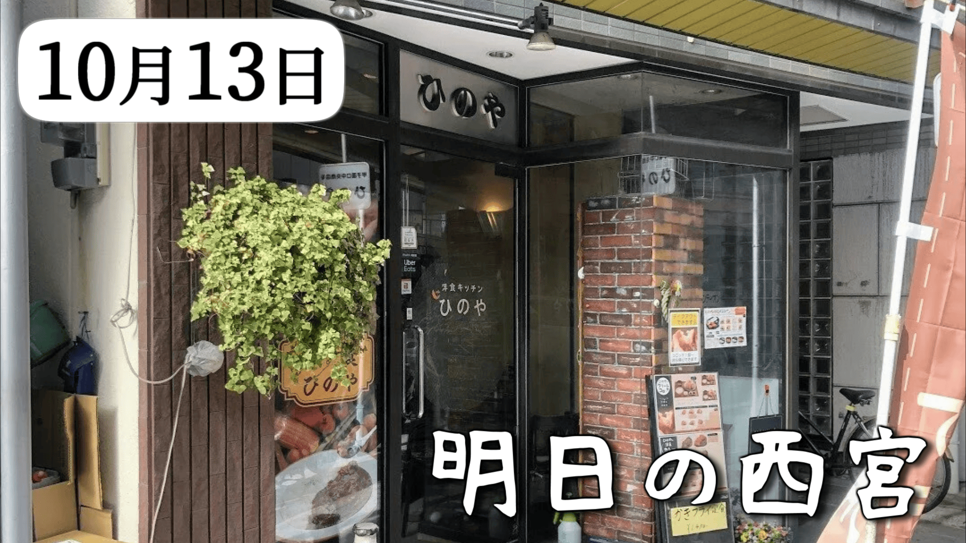 明日、10月13日で起こる西宮の情報をにしつーがお知らせします。