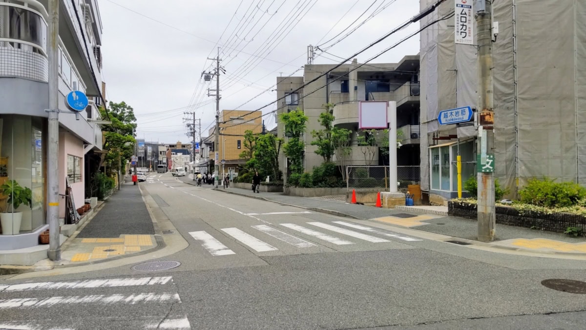 こっちに行くと、苦楽園口通りへ。としのぶさん家の粉トゥッティ フルッティ、いかりスーパーなどがあります。