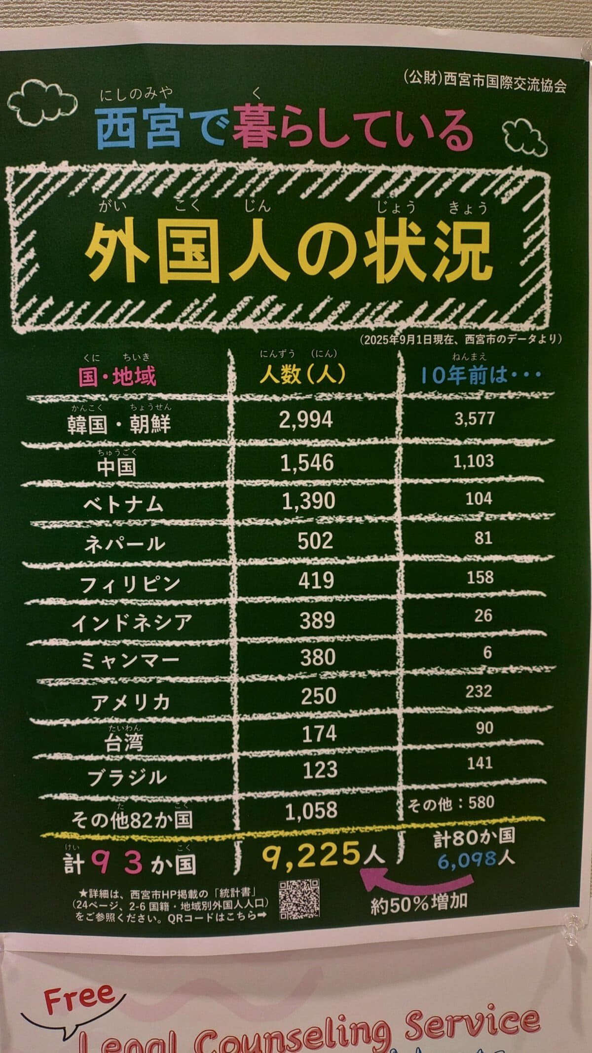 西宮で暮らしてる「外国人の状況」がフレンテ西宮で貼り出されていました。