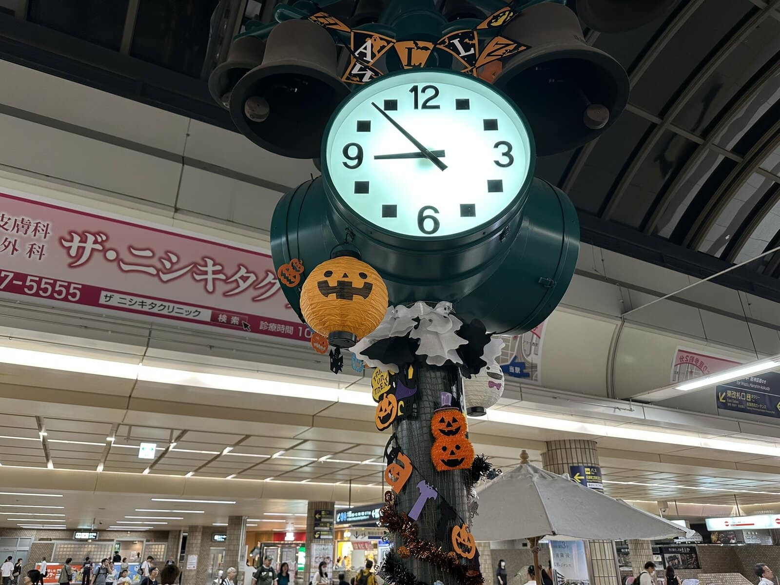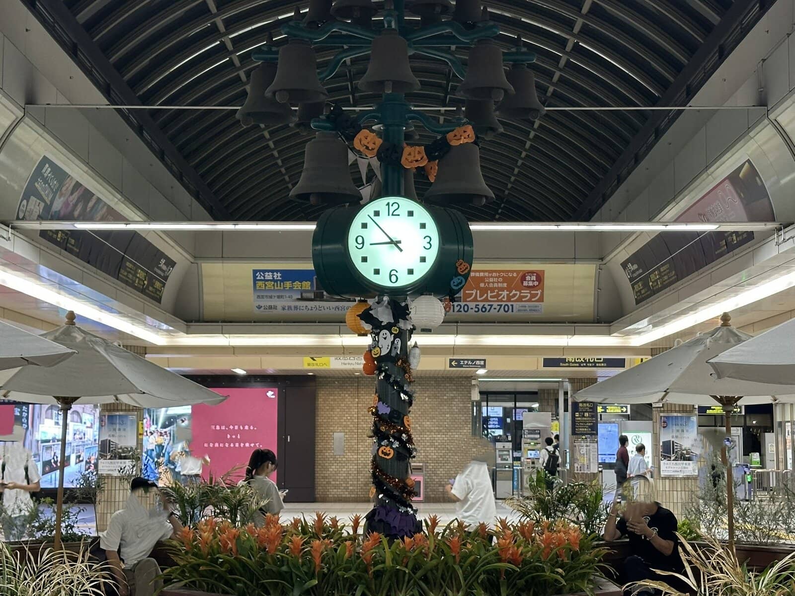 西宮北口駅構内の「カリヨンの鐘」がハロウィン仕様になっています。