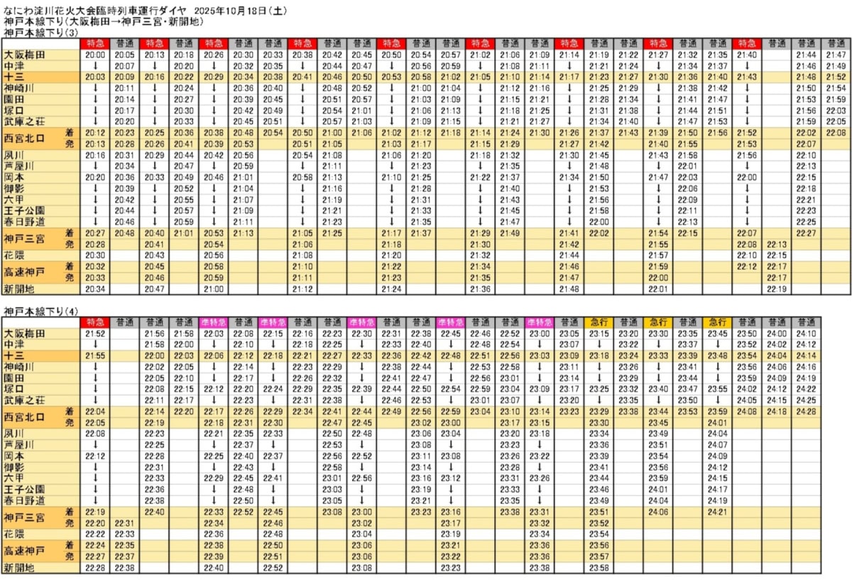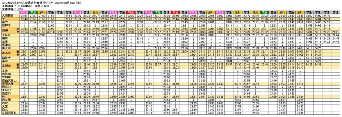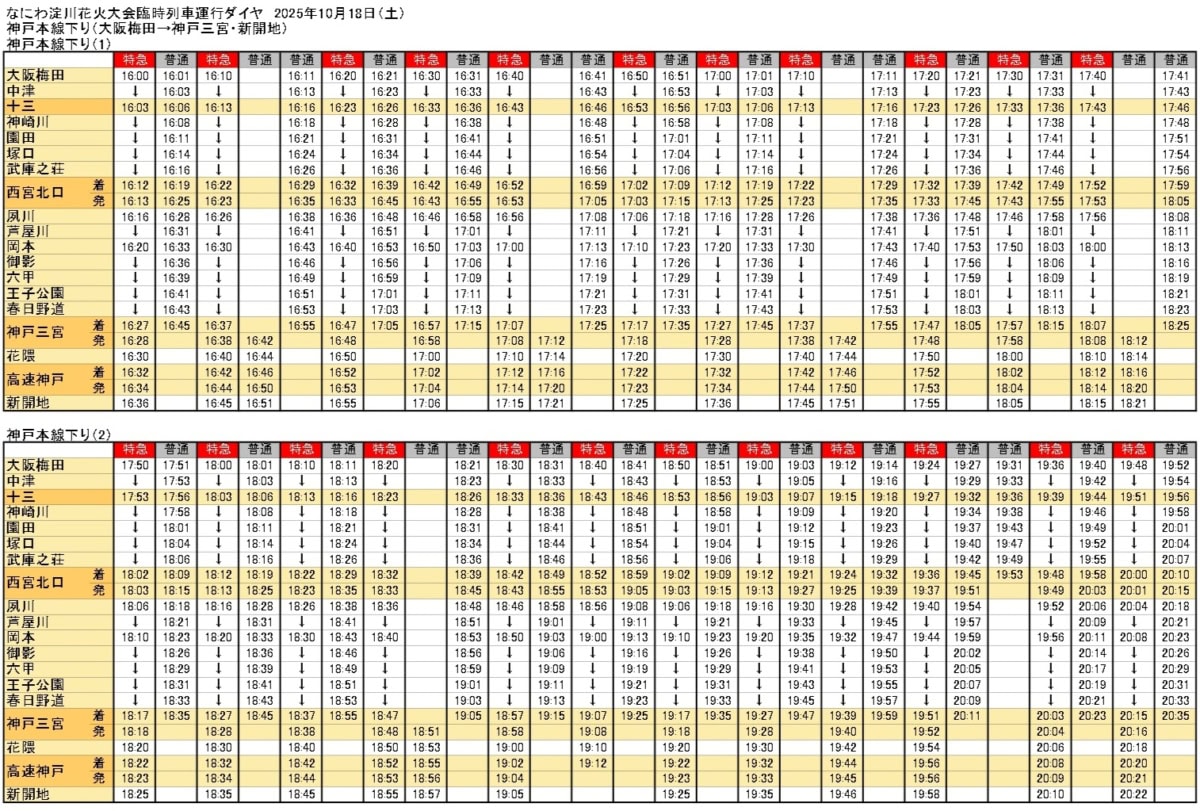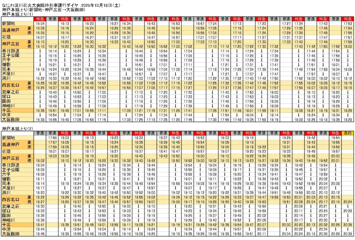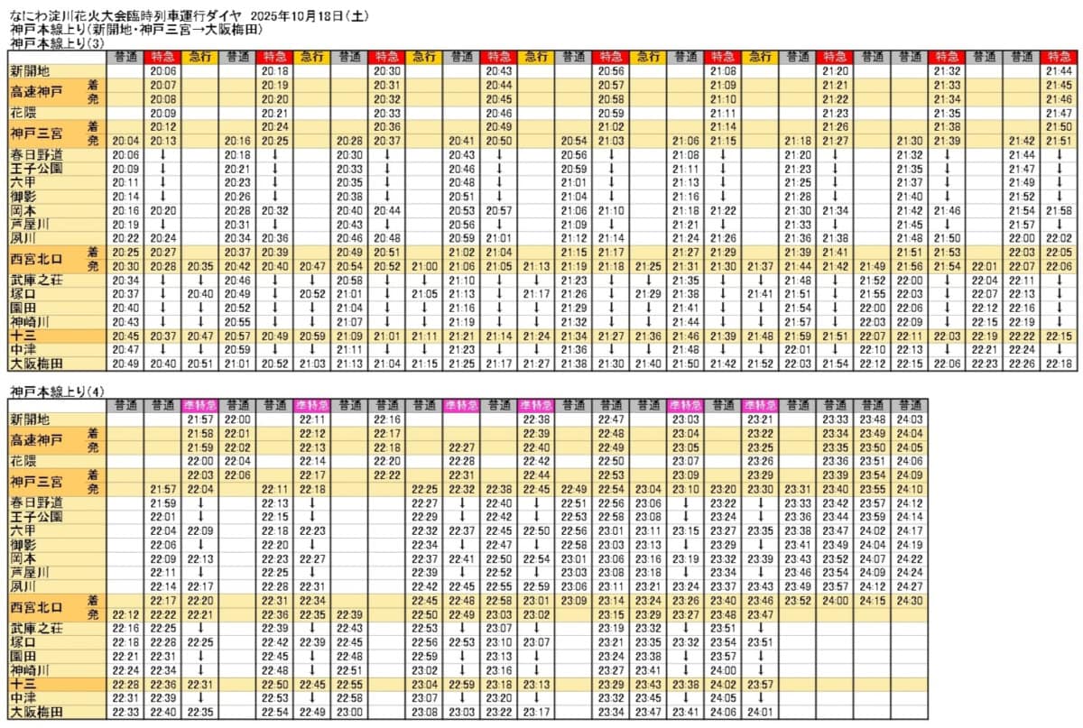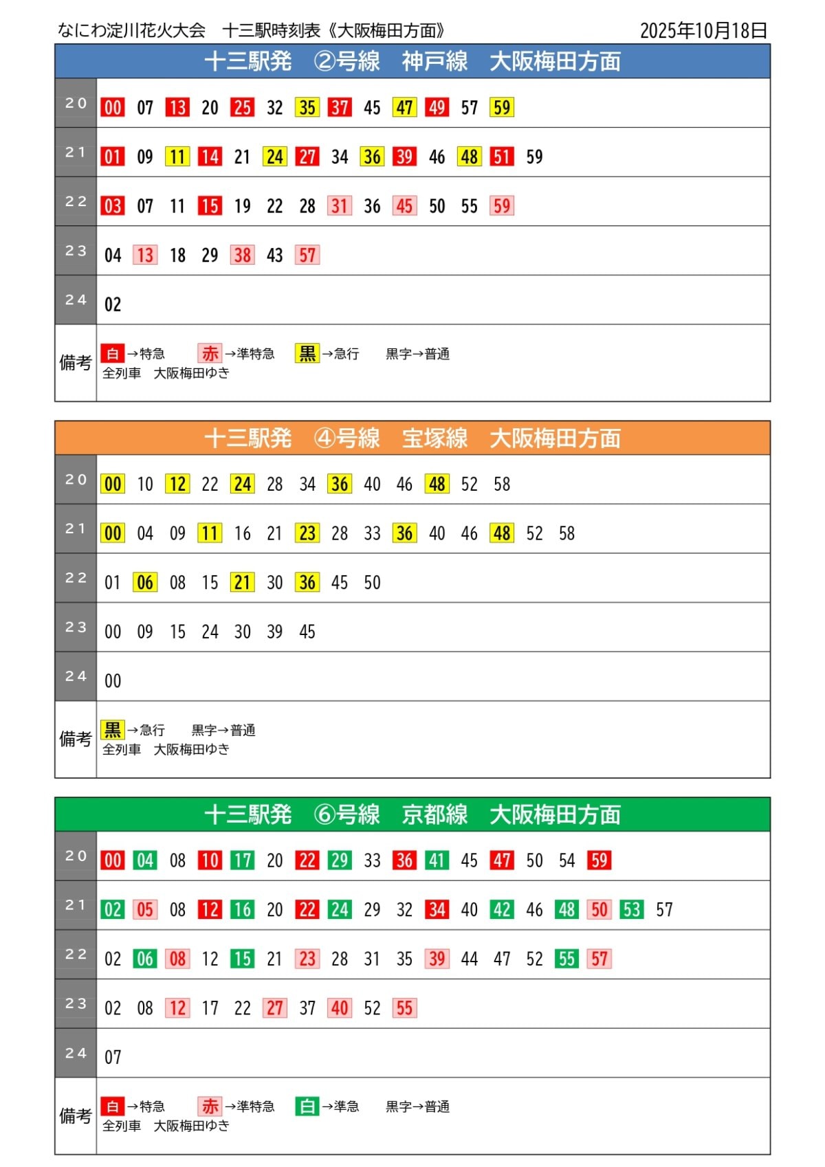 以下ダイヤ情報は『なにわ淀川花⽕⼤会』開催に伴う臨時列⾞の運転について | 阪急電鉄からのお知らせ | 阪急電鉄より引用しています。