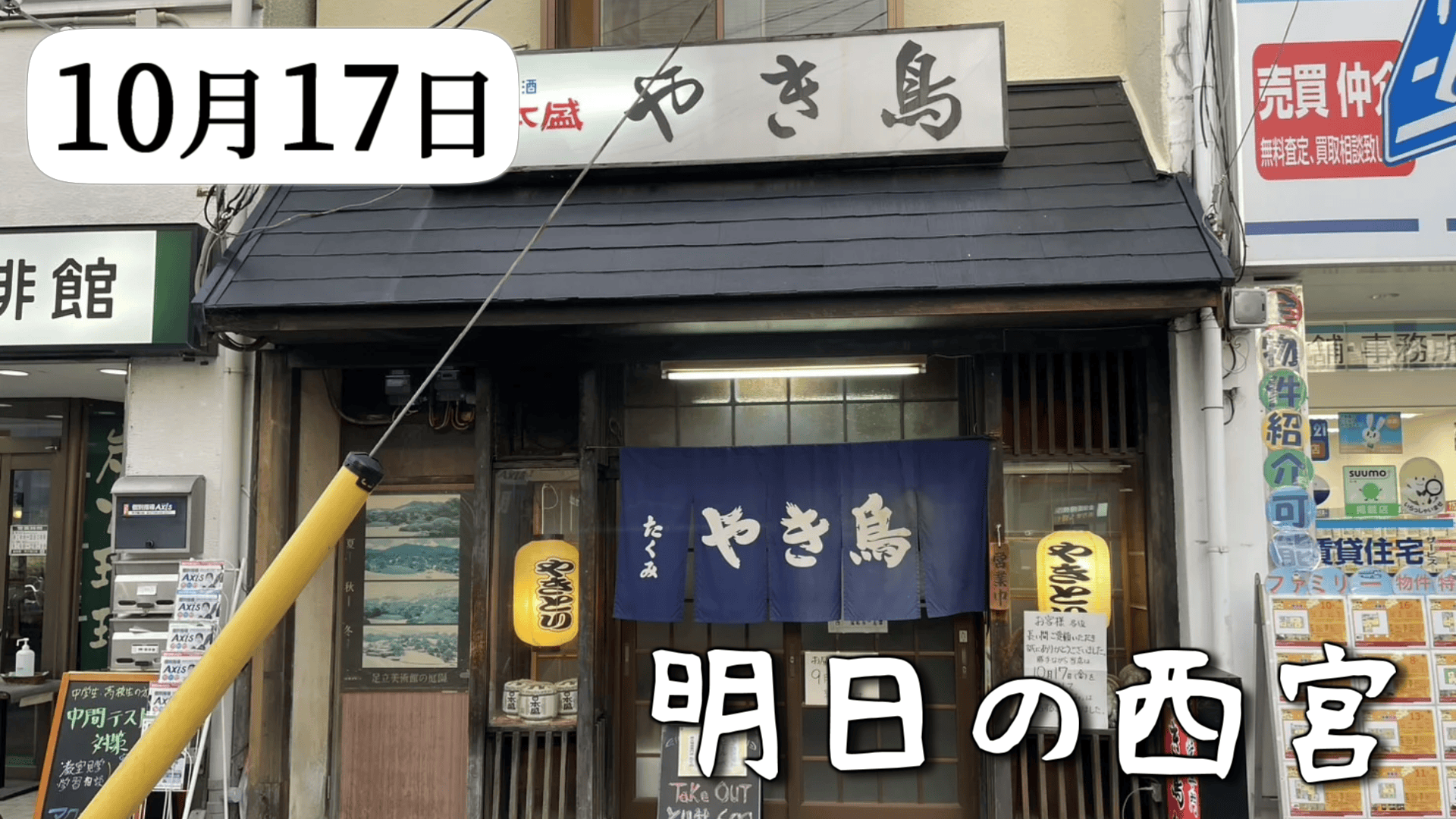明日、10月17日で起こる西宮の情報をにしつーがお知らせします。