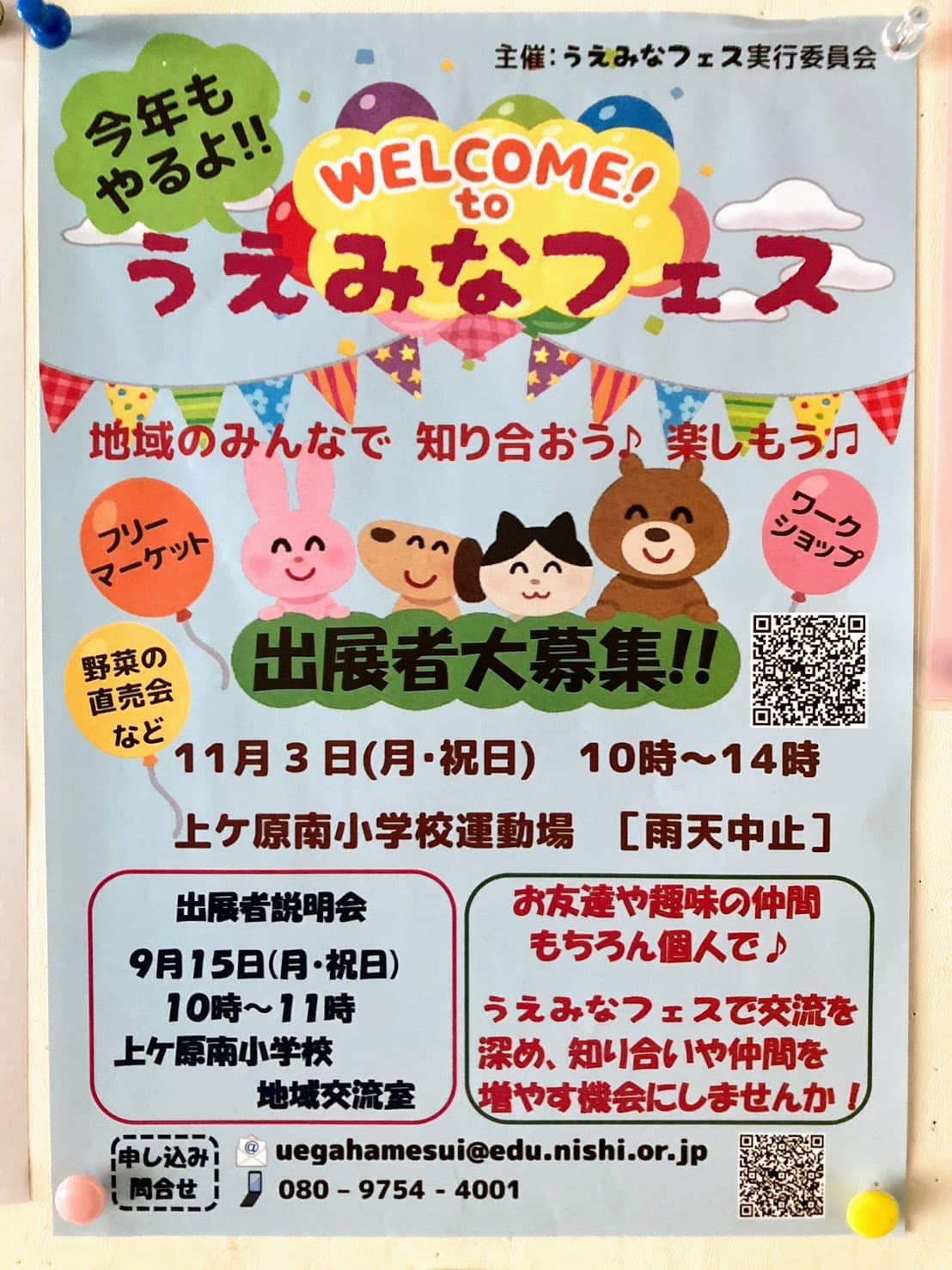 上ケ原南小で「うえみなフェス」やるみたい。11月3日(月)