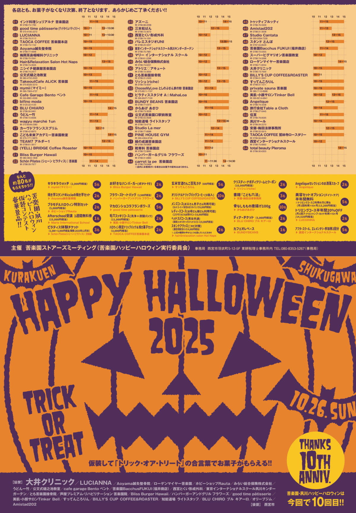 - 仮装して「トリック・オア・トリート」の合言葉で各店でお菓子もらえるよ〜🍬