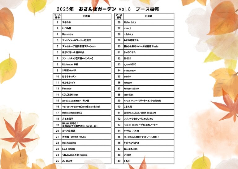 - 会場マップ&全49ブースの出店一覧が発表されてるよ〜 🗺️
