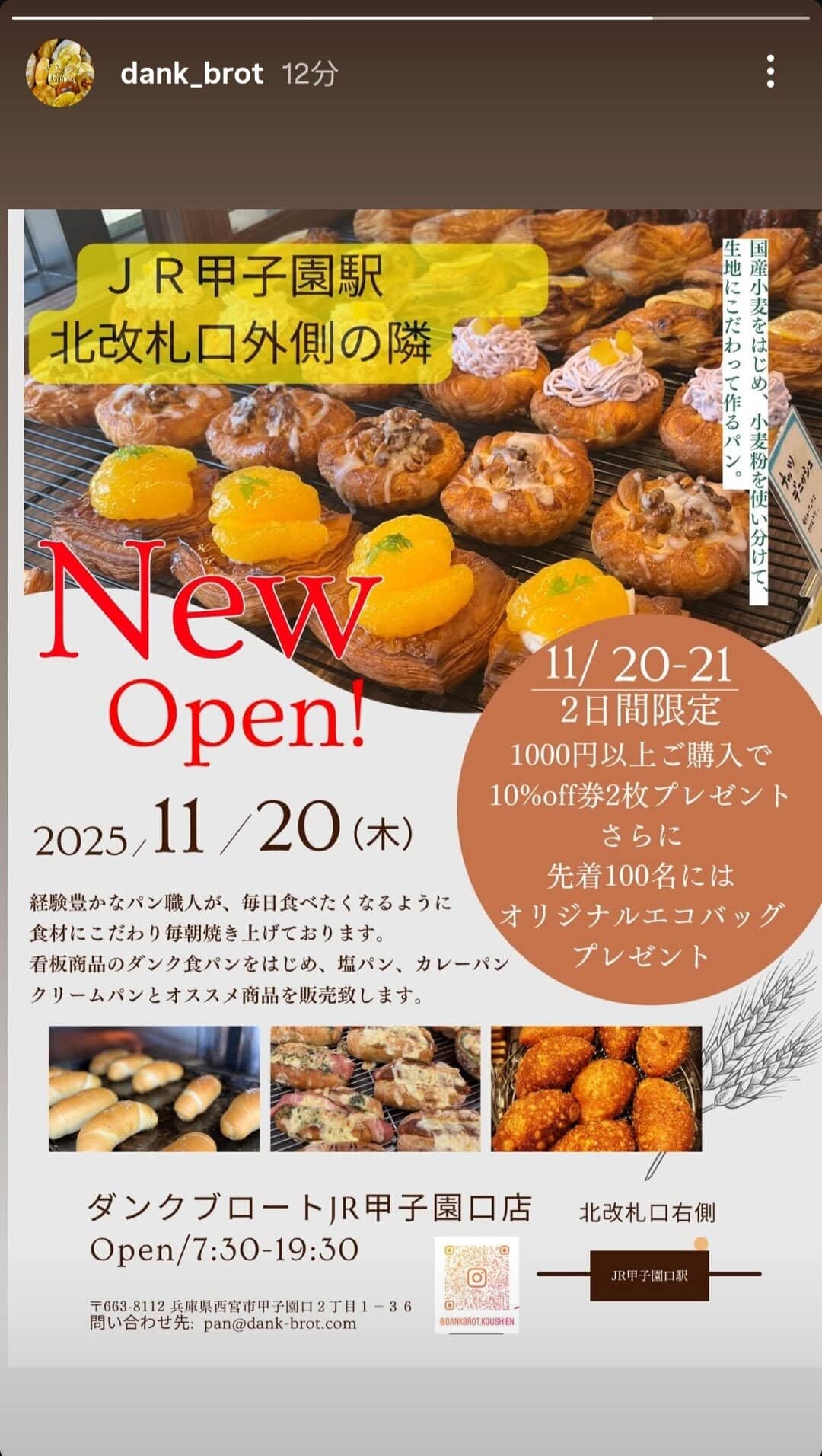 パン屋さんがなくなってしまうのかと思っていたところに、新しいパン屋さんがやってくると聞いて、ひと安心&うれしいですね〜!パン激戦区の甲子園口。パン好きさんはもちろん、甲子園口を利用される方も気になるのでは😄