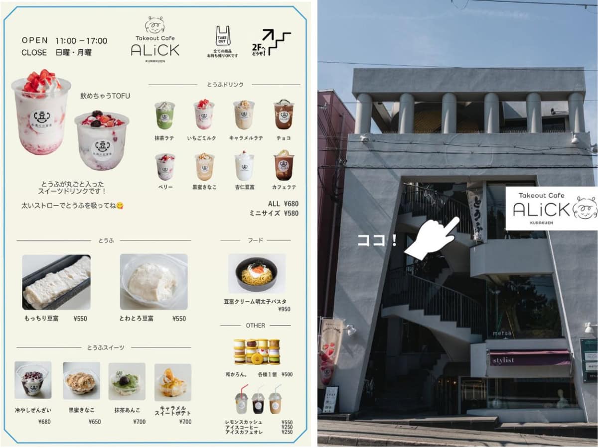 苦楽園エリアに初!豆富スイーツのTakeoutCafe ALiCK(アリック)に、新作の豆富スイーツが出てます〜。大豆たんぱくがとれるから、甘いもん食べたいけどヘルシーにいきたい人は間違いないです!
