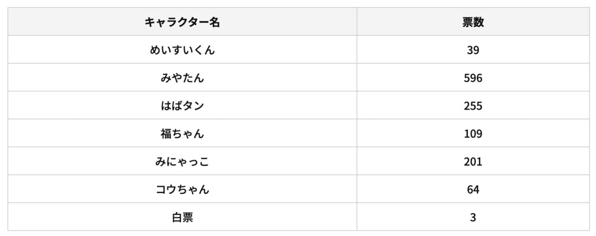 2位のはばタンとの差を倍以上離してみやたんが1位