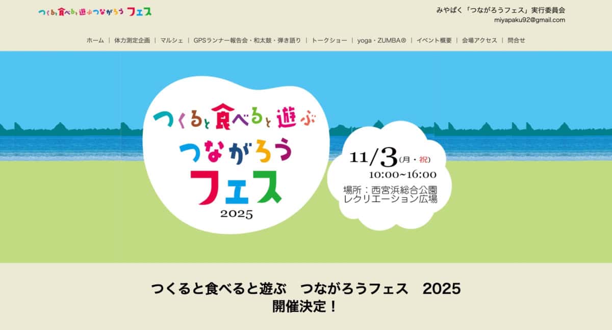 11月3日(月・祝)、西宮浜総合公園で「つくると食べると遊ぶ つながろうフェス 2025」が開催されるようです。