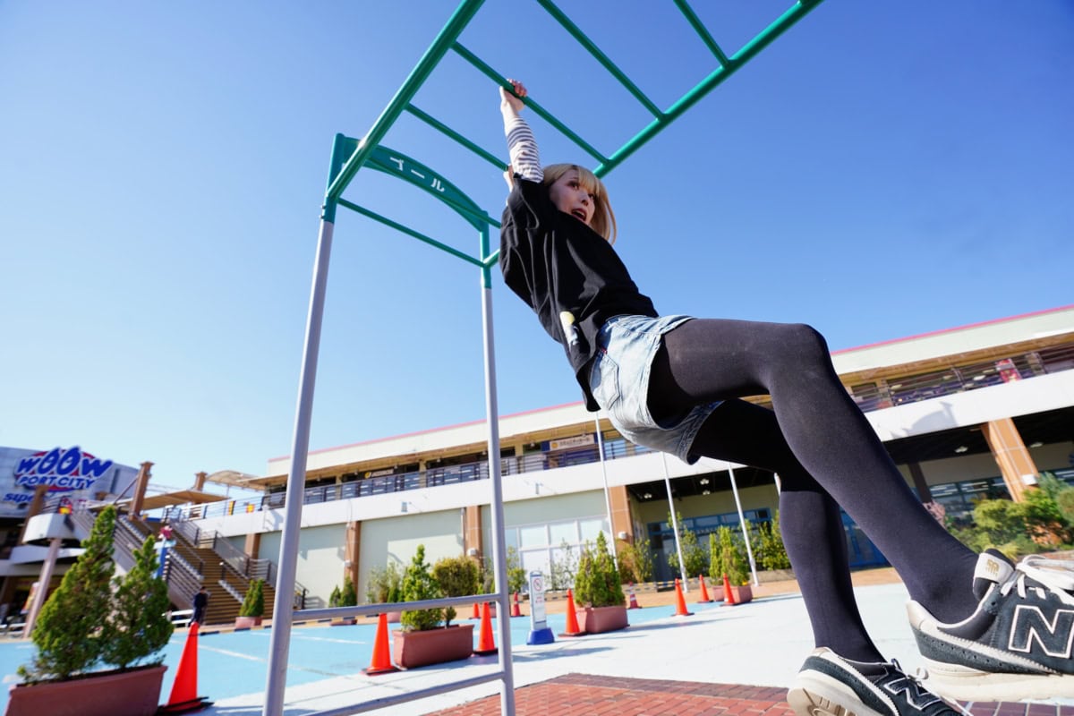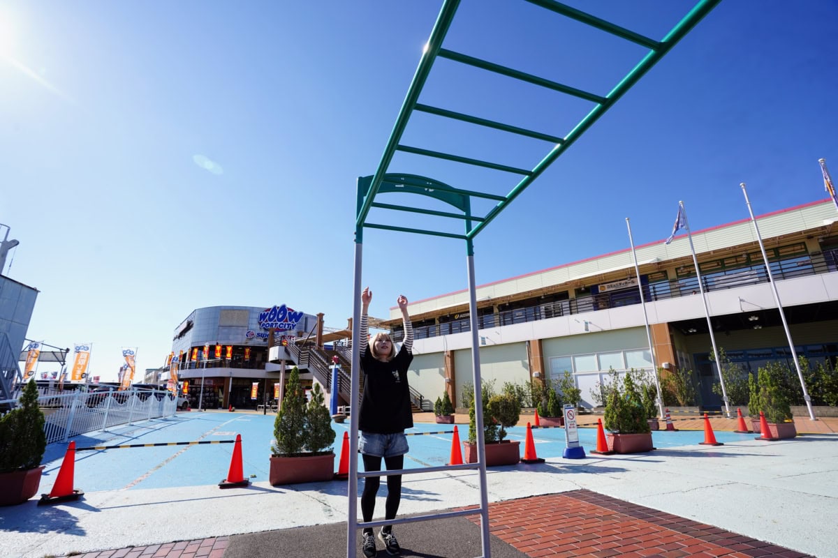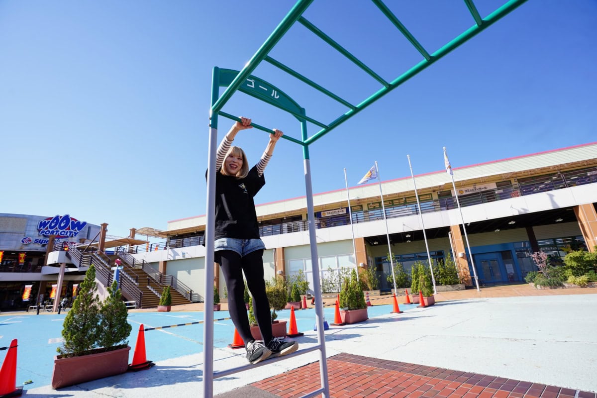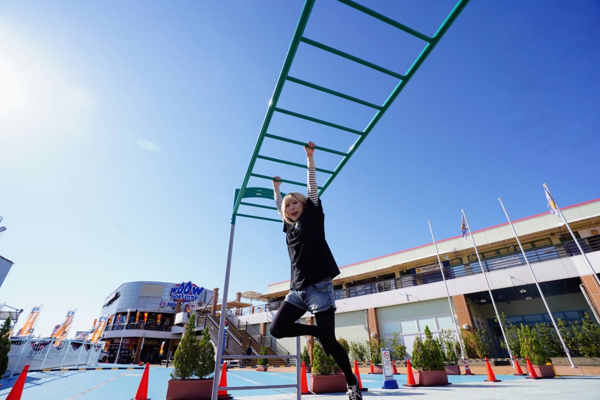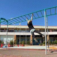 懸垂以降は下半身の反動を利用することで、よりスムーズに渡ることができます。やって〜〜