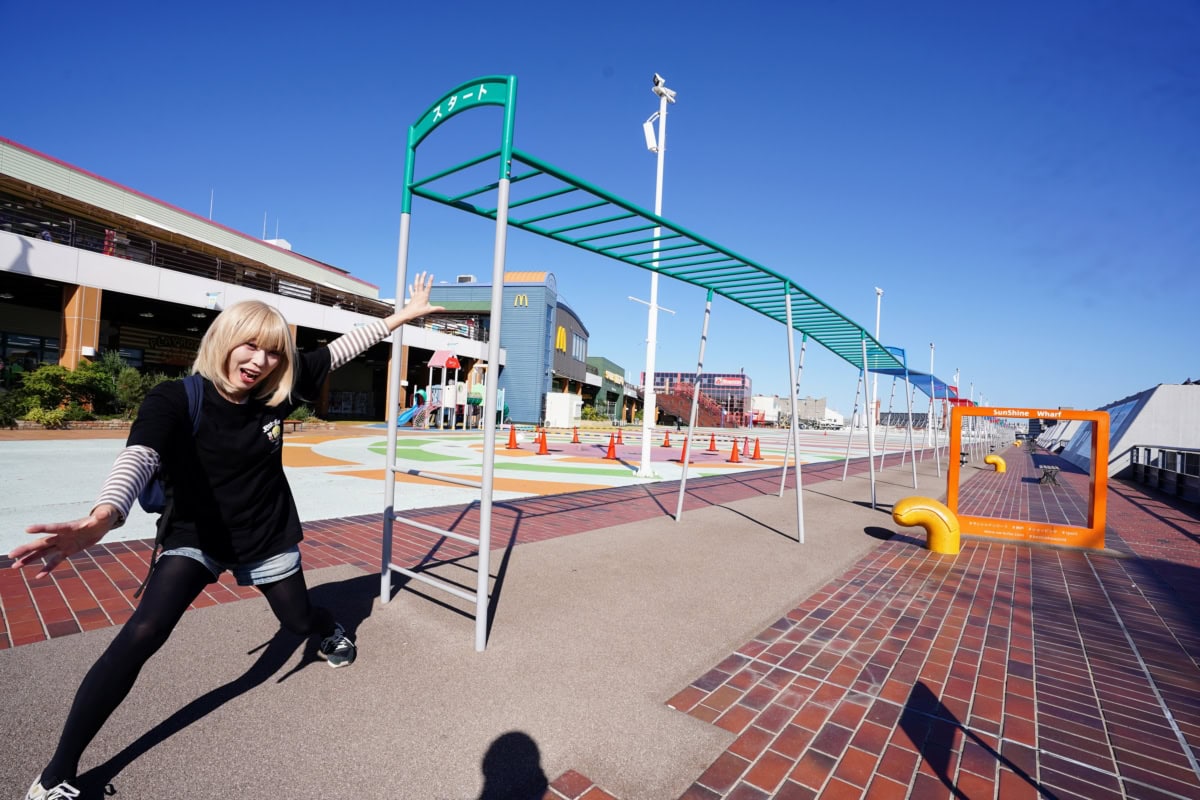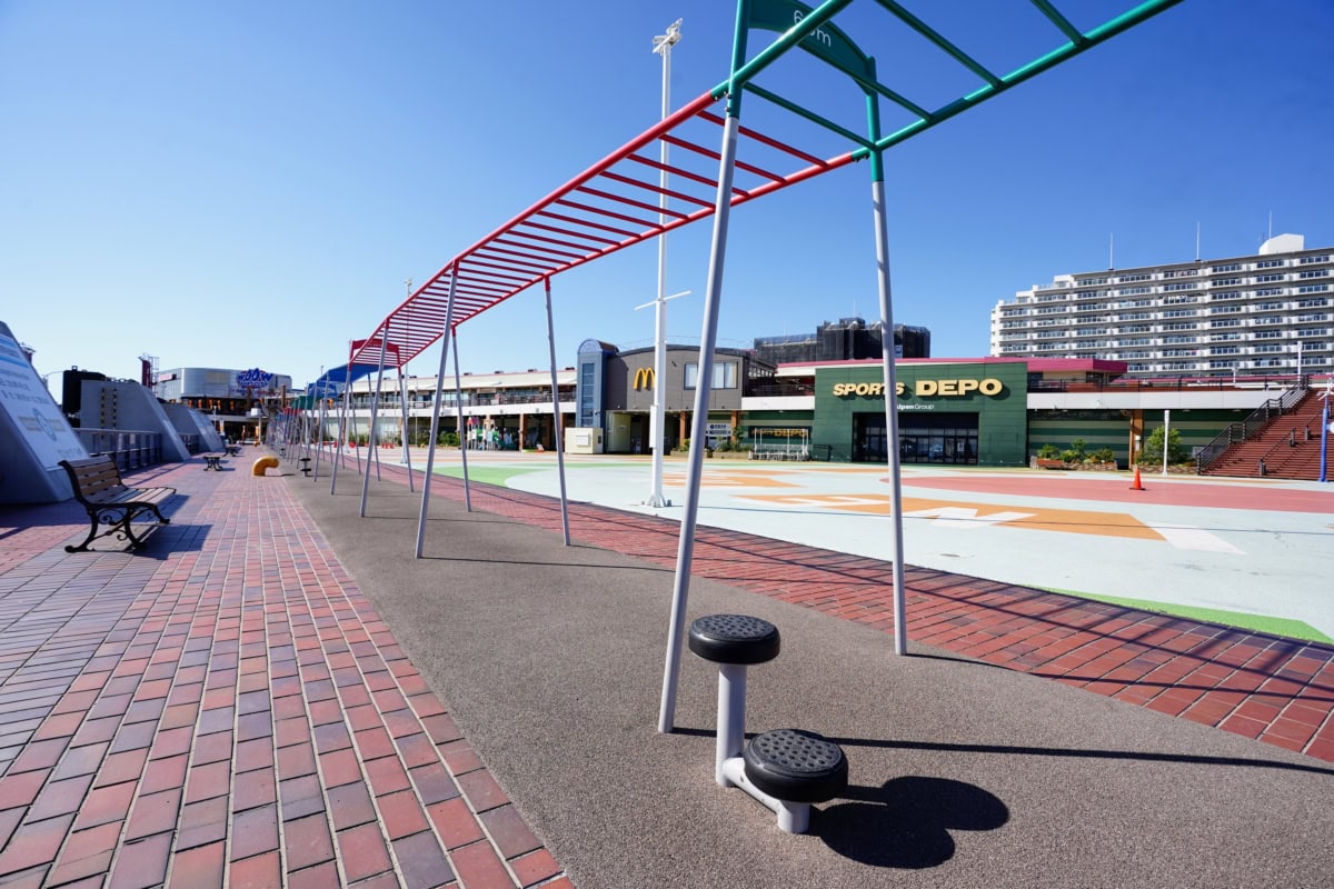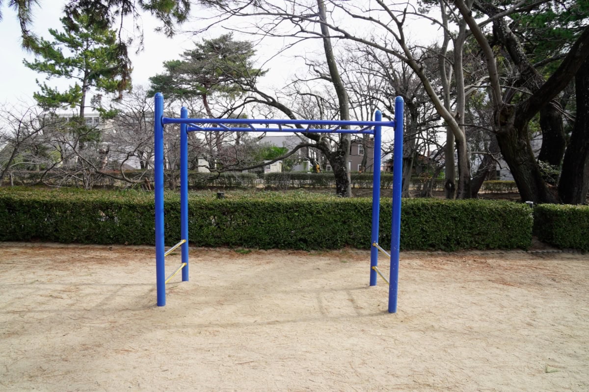 大塚北公園の大屋根リングばりの永遠に楽しめるループ型のうんてい。しかもJRの電車が見れる