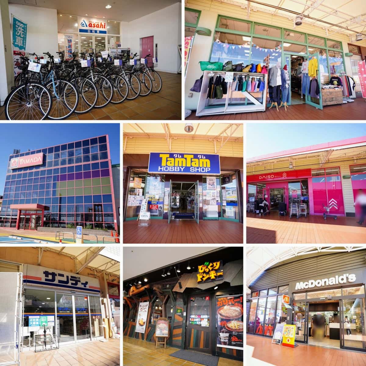 マクドもびっくりドンキーも入ってますし。ダイソーもサンディもヤマダデンキもおもちゃのタムタムも服屋さんもある!