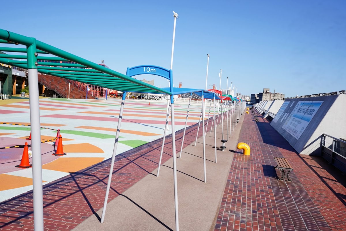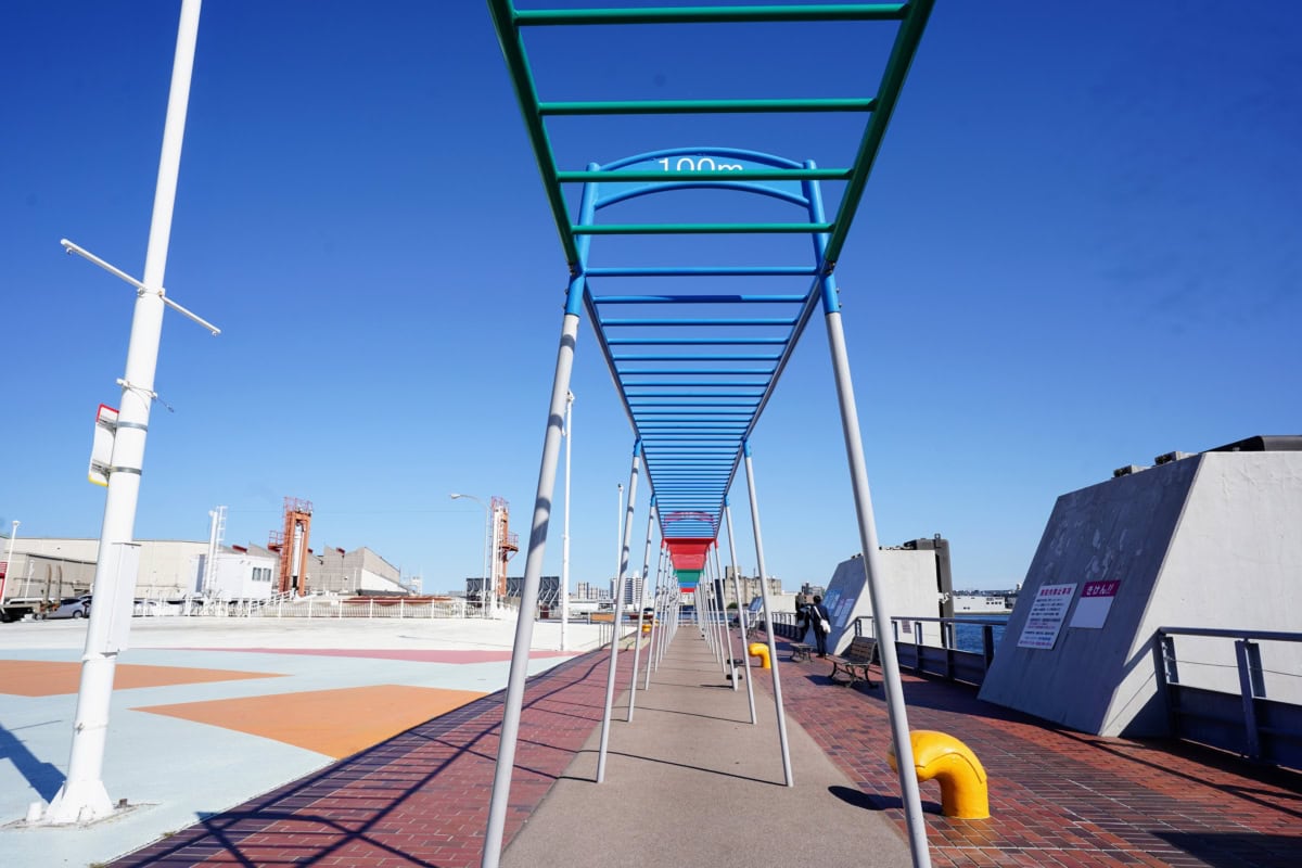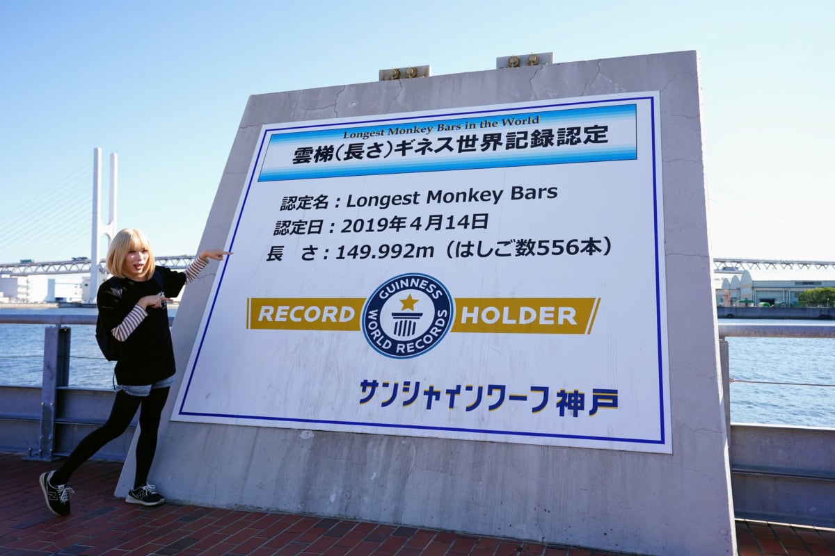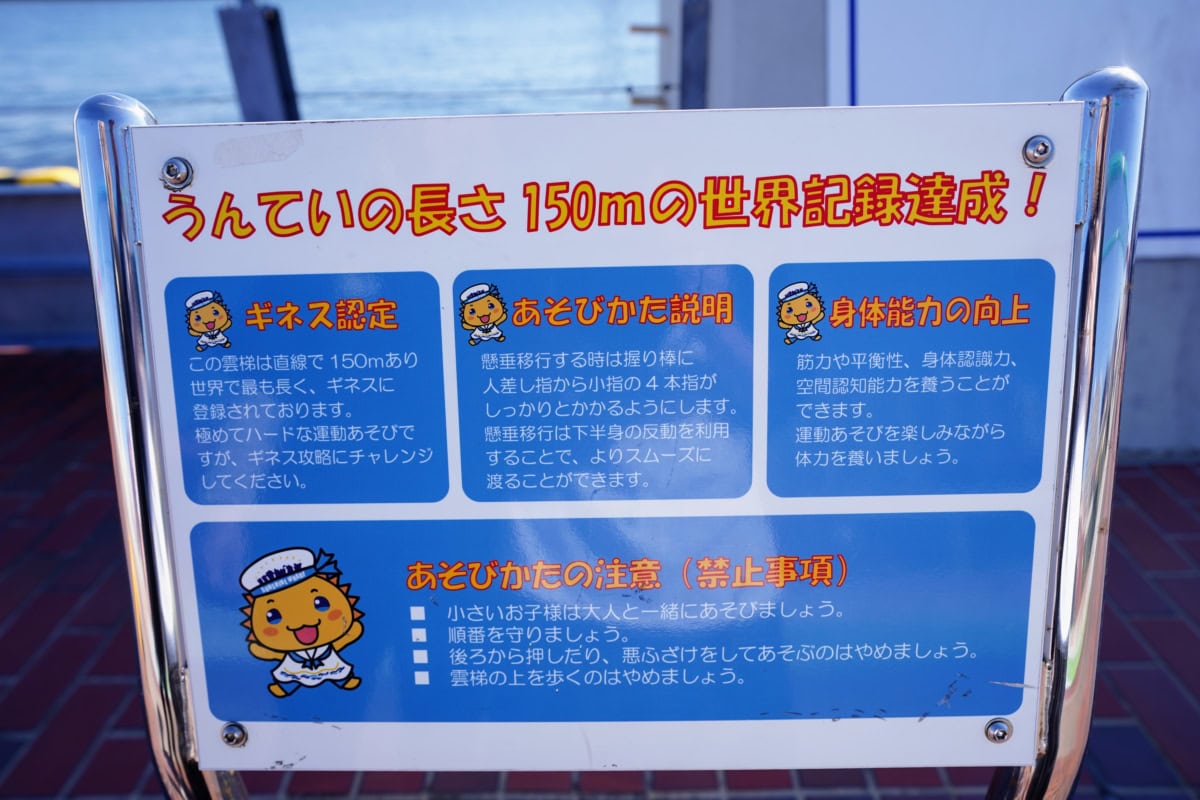 それもそのはず。サンシャインワーフ神戸のこの「うんてい」。長さギネス世界記録認定なんだそうです。150mにならんかったのが絶妙