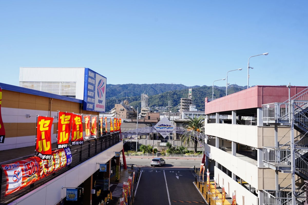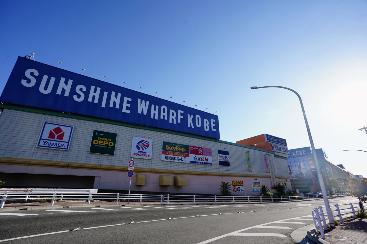 西宮から国道43号線で芦屋を通り過ぎて、5分かからないくらいのところにある商業施設「サンシャインワーフ神戸」