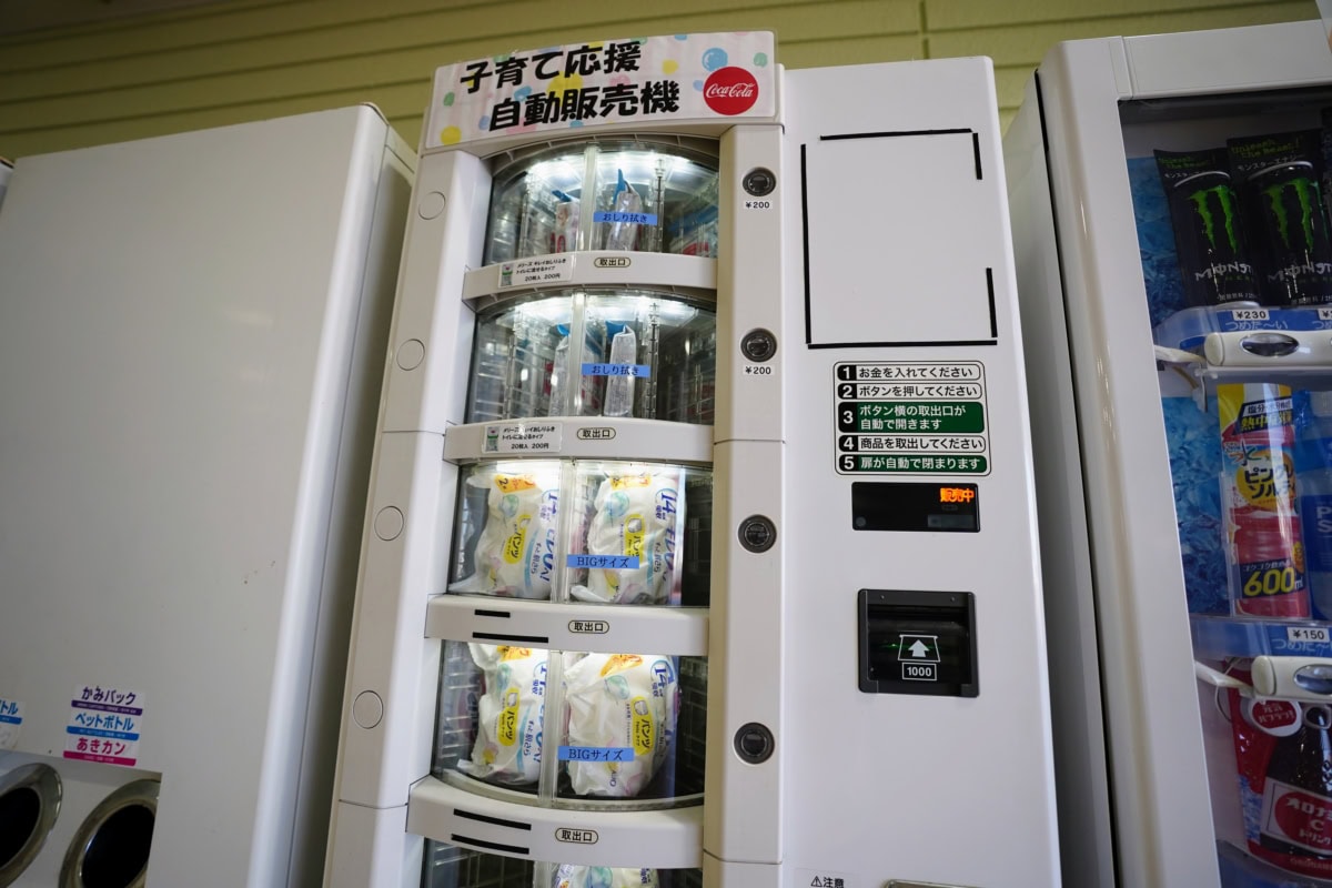おむつもおしりふきも売ってる自販機。