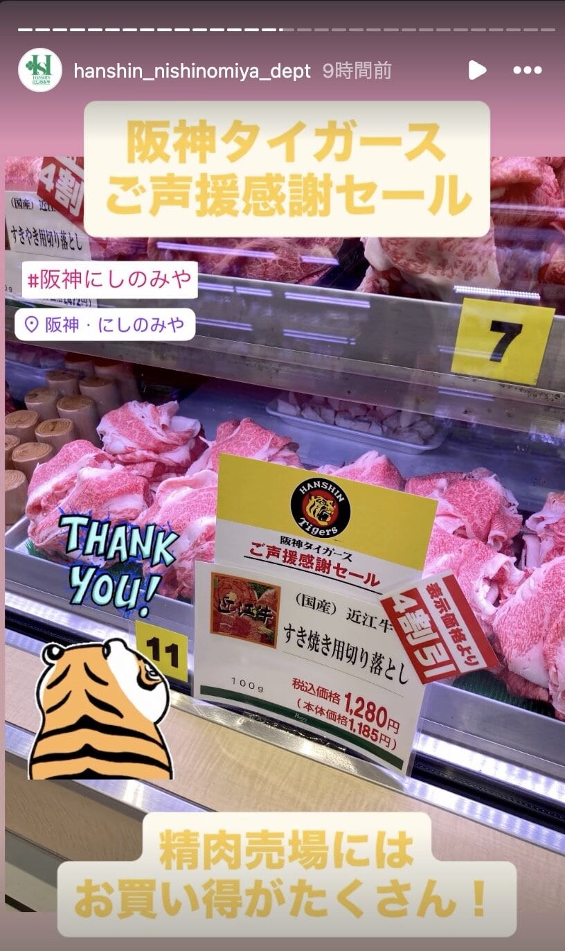「阪神・にしのみや」で阪神タイガースご声援感謝セールが開催されています。