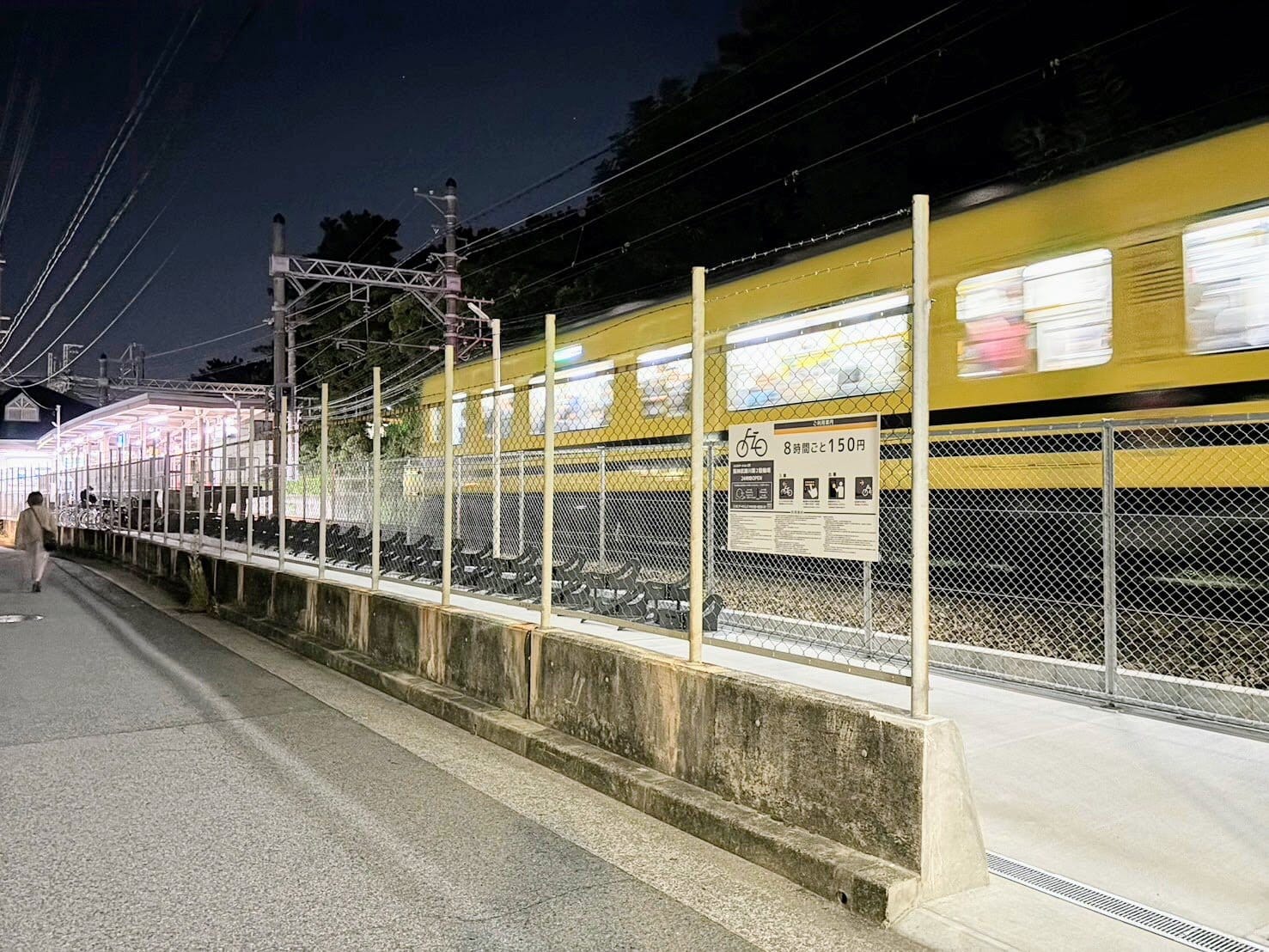そこそこな台数が停められそうです。ホームの明かりが届くから、夜でも明るくて安心ですね〜