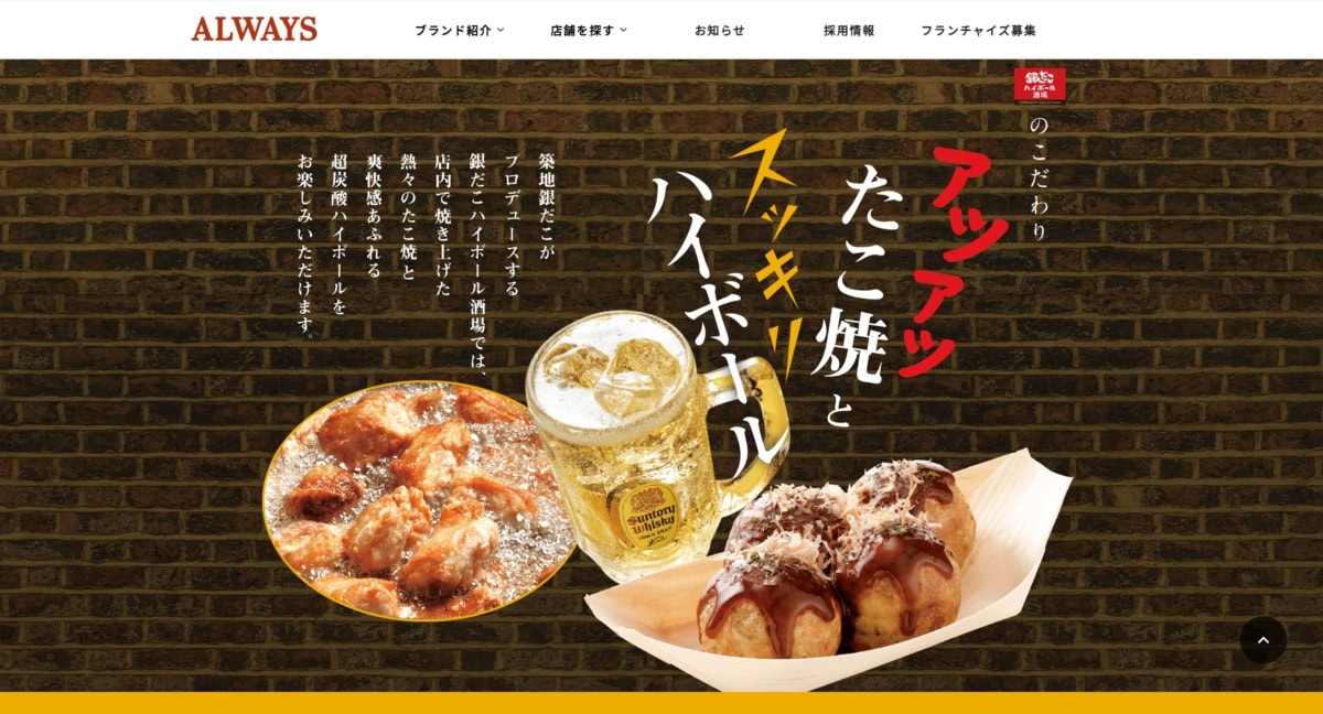 関東発祥のたこ焼きチェーン「築地銀だこ」が展開する、酒場スタイルの「築地銀だこハイボール酒場」。外はカリッと、中はトロッとした香ばしく熱々のたこ焼きをつまみにお酒を楽しめるお店で、串焼きやからあげ、たこを使った一品料理など、おつまみメニューも充実しているそうです〜