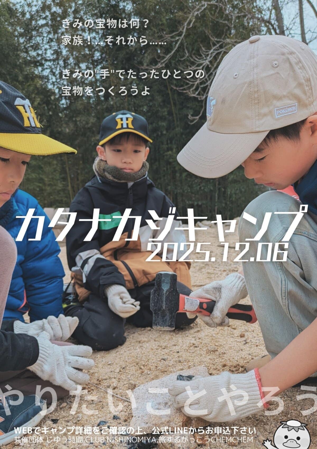 小2〜小6対象の日帰りキャンプ「カタナカジキャンプ」が、この冬は五寸釘からつくる釘ナイフに挑戦します。