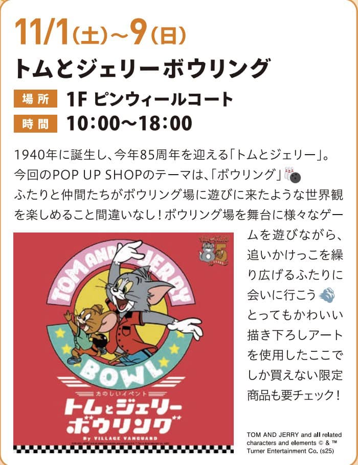 11月1日(土)〜9日(日)、ららぽーと甲子園で「トムとジェリーボウリング」が開催されています。