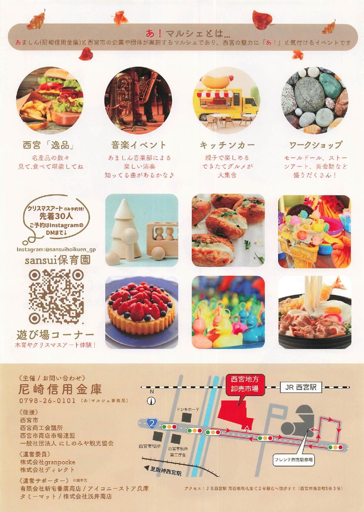 尼崎信用金庫さんと西宮の企業・団体がコラボして開くマルシェ。 去年開催したときに行ったのですが、親子がすごくたくさんいて、すごく楽しそうでした。 お近くの方は行ってみては。