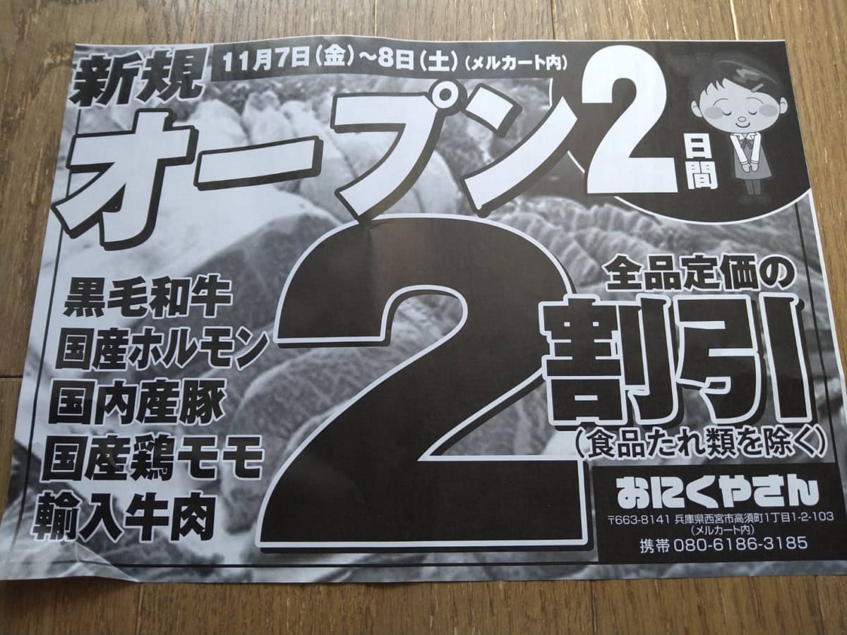 メルカードでオープンした「おにくやさん」が全品2割引きになっています。