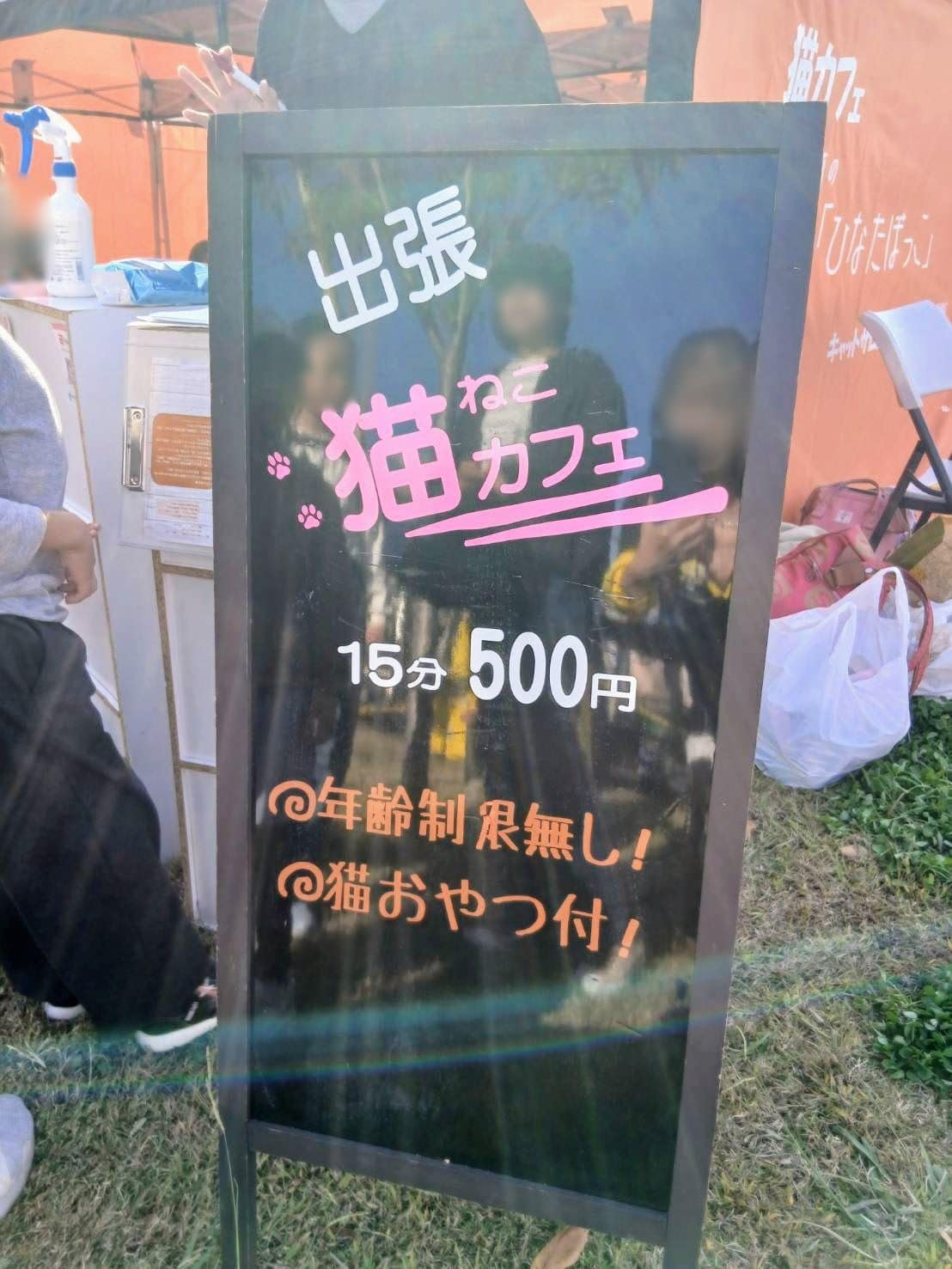 西宮浜総合公園で出張猫カフェもきています。さきほど、同じ場所でお化けやしがきてる記事を書いてます〜