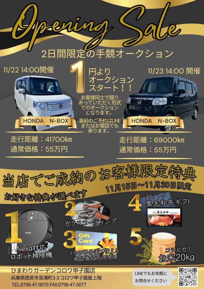 さらにさらに、11月22日(土)、23日(日)の二日間限定で1円からスタートの手競り中古車オークションを開催!