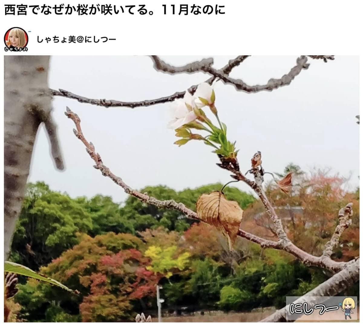 2025.11.09に記事にした「西宮でなぜか桜が咲いてる。11月なのに」の記事の桜が取り上げられます〜。