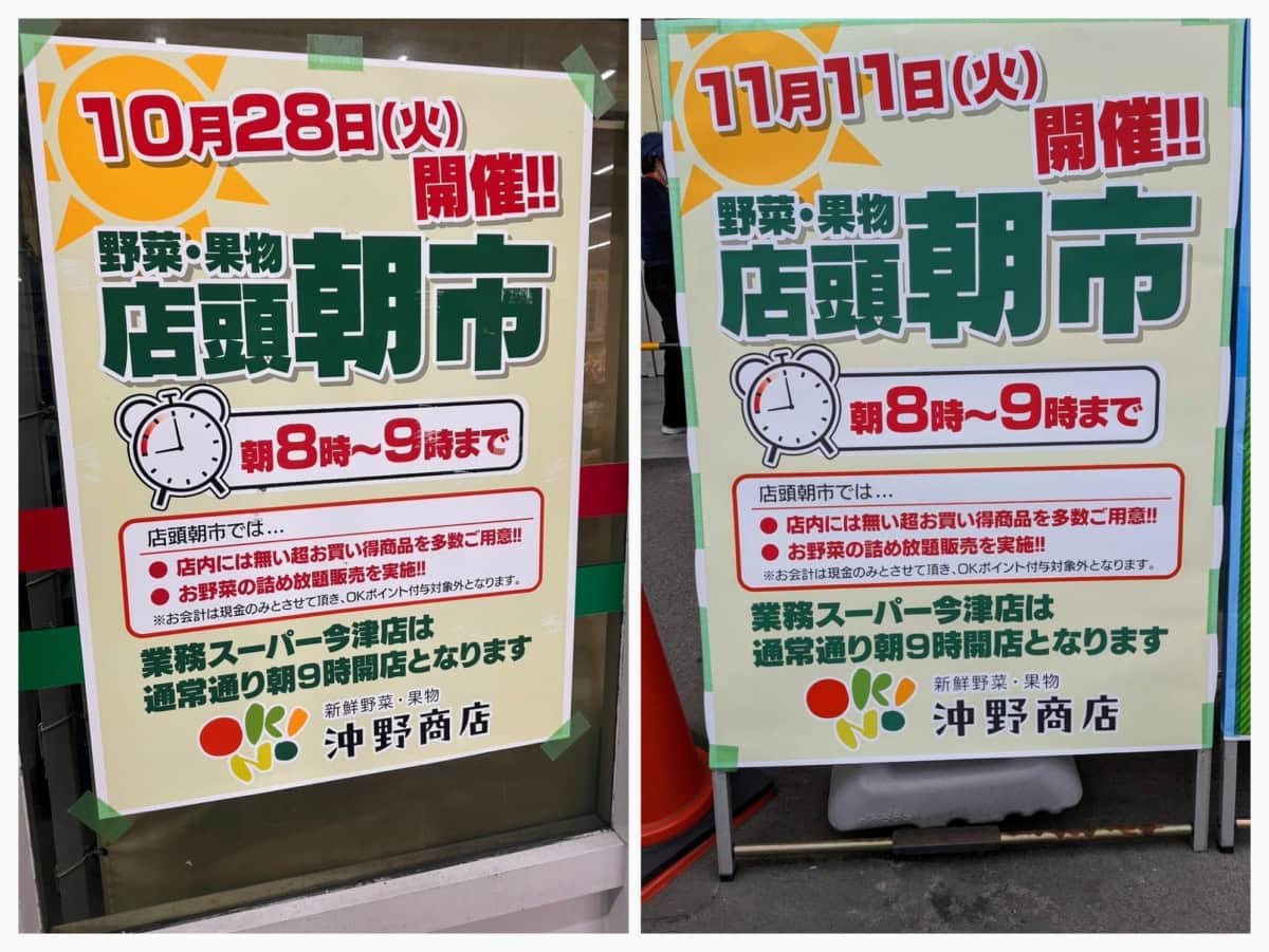 昨日11月11日に、業務スーパー今津店で店頭朝市やってました〜!