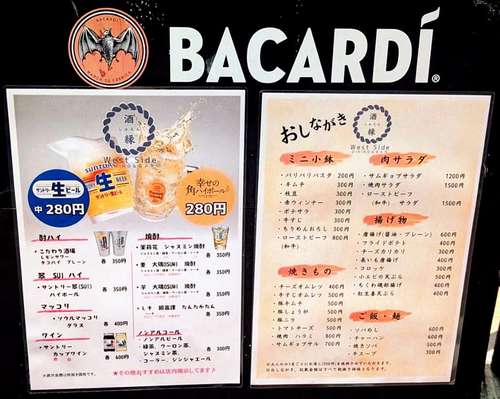 JR西宮近くの斜めの道に「酒縁West Side」というダイニンングバーができています。