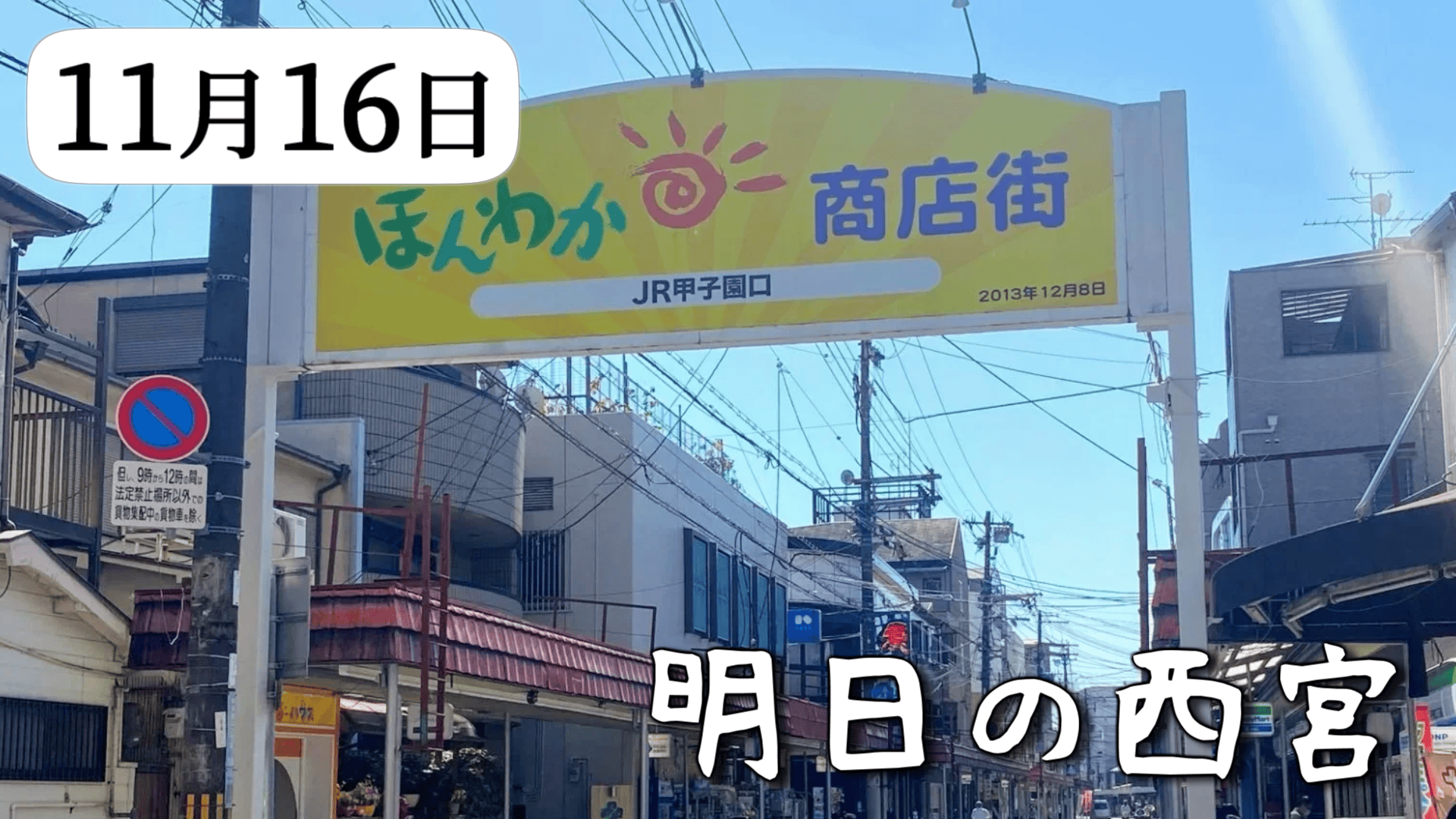 明日、11月16日で起こる西宮の情報をにしつーがお知らせします。